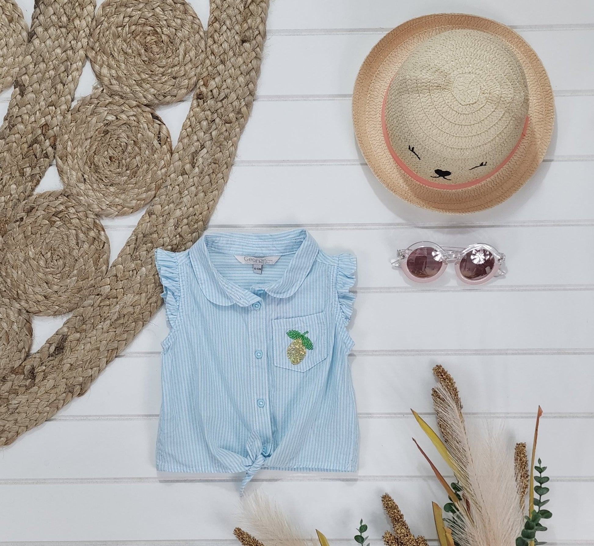 Découvrez notre blouse George pour les filles âgées de 6 à 12 mois. Cette blouse neuve est dotée de frousfrous aux épaules et d'un motif de citron en paillettes. Offrez à votre enfant un look frais et scintillant pour toutes les occasions.