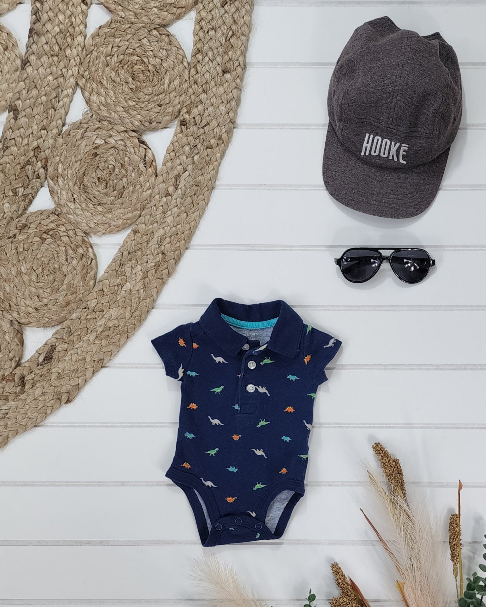 Ce cache-couche Carter's pour nouveau-né est à la fois fonctionnel et adorable. Avec son imprimé de dinosaures sur un fond bleu foncé, il ajoutera une touche ludique à la garde-robe de votre bébé. Les boutons-pression à l'entrejambe facilitent le changement de couche. Associez-le à un pantalon en coton doux pour un ensemble confortable et mignon.