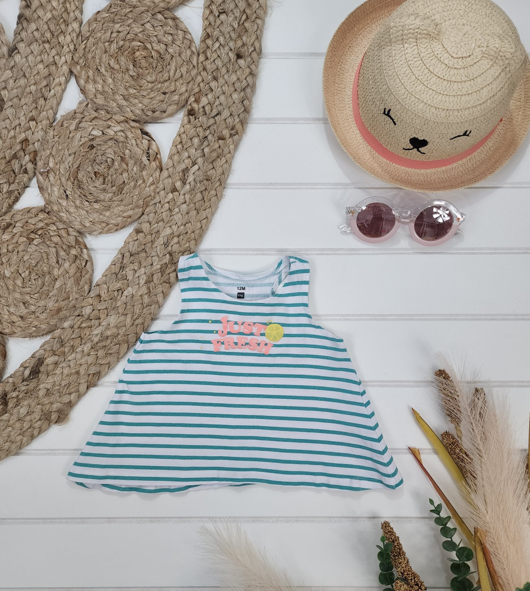 Cette camisole Tag en lignée blanc et turquoise est le choix idéal pour votre bébé de 12 mois. Sa conception agréable et confortable offre une libre circulation pour votre enfant, tandis que les couleurs vives et vibrantes ajoutent une touche de style à sa garde-robe. Gardez votre bébé heureux et à l'aise avec cette camisole polyvalente.