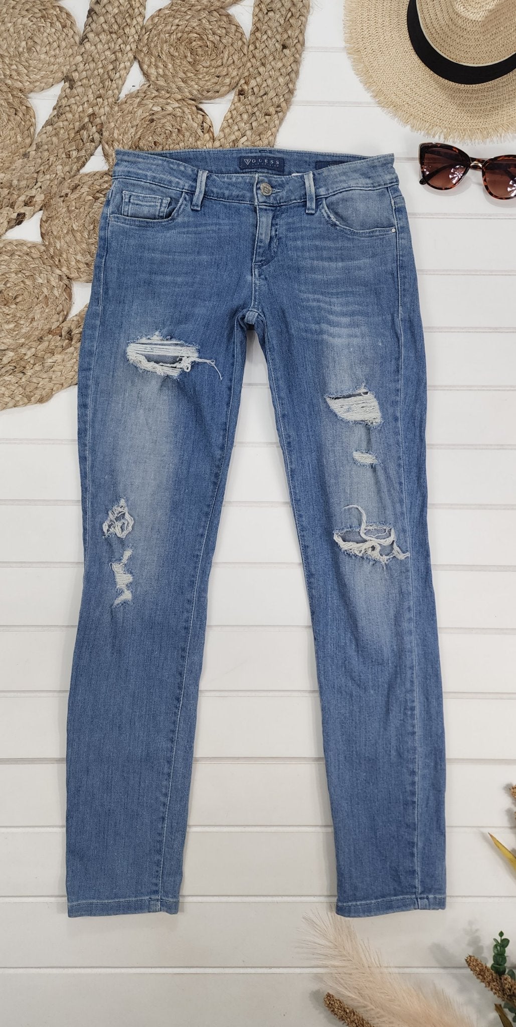 Créez un look unique avec nos jeans Guess à trous! Les trous subtils ajoutent une touche de cool tandis que les détails du design rehaussent votre style. Confortables et tendances, ces jeans sont parfaits pour toute occasion! (Note: les trous sont intentionnels, pas de panique!)