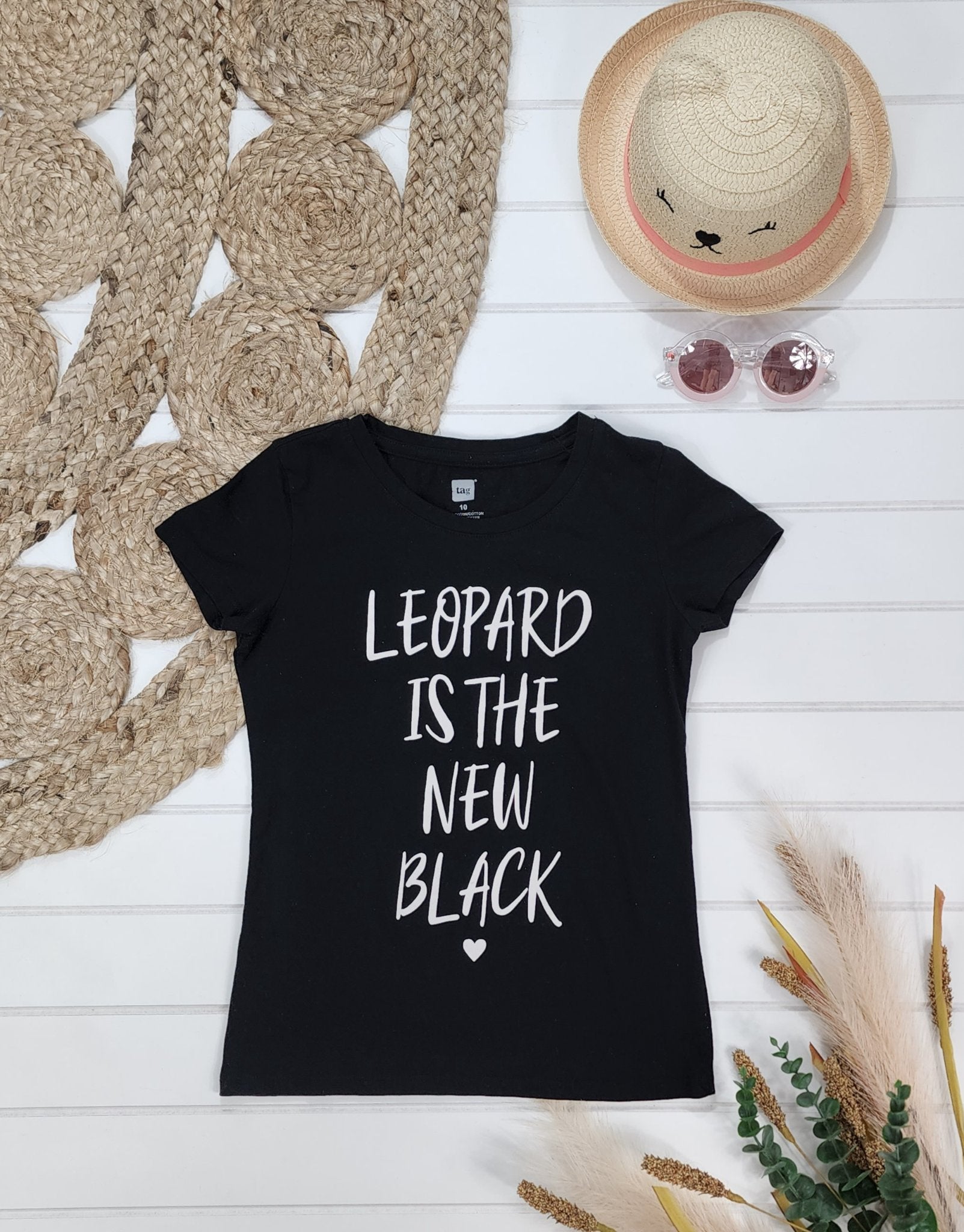 Affichez votre style avec notre t-shirt tag pour les filles de 10 ans ! Avec le message intemporel "LEOPARD IS THE NEW BLACK", vous serez à la pointe de la mode. Fabriqué avec un tissu de qualité pour un confort optimal. Soyez audacieux, soyez imprimé léopard !