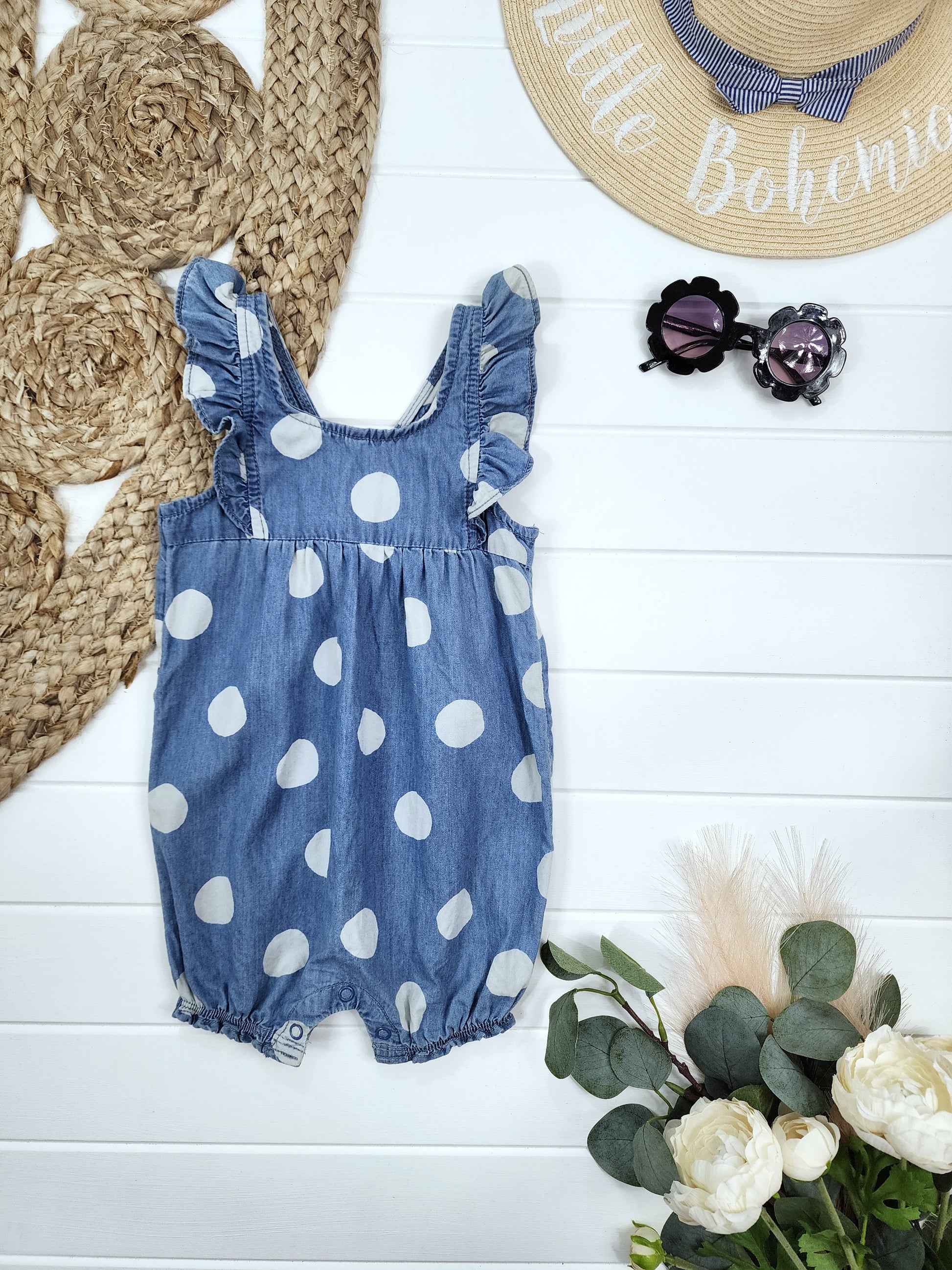 Cette barboteuse Carter's, en taille 12 mois, est à la fois élégante et confortable pour votre bébé. Le froufrou aux épaules ajoute une touche de charme, tandis que la couleur jeans à pois blancs ajoute une touche de style. Parfait pour toutes les occasions, votre bébé sera à la mode et à l'aise dans cette barboteuse.
