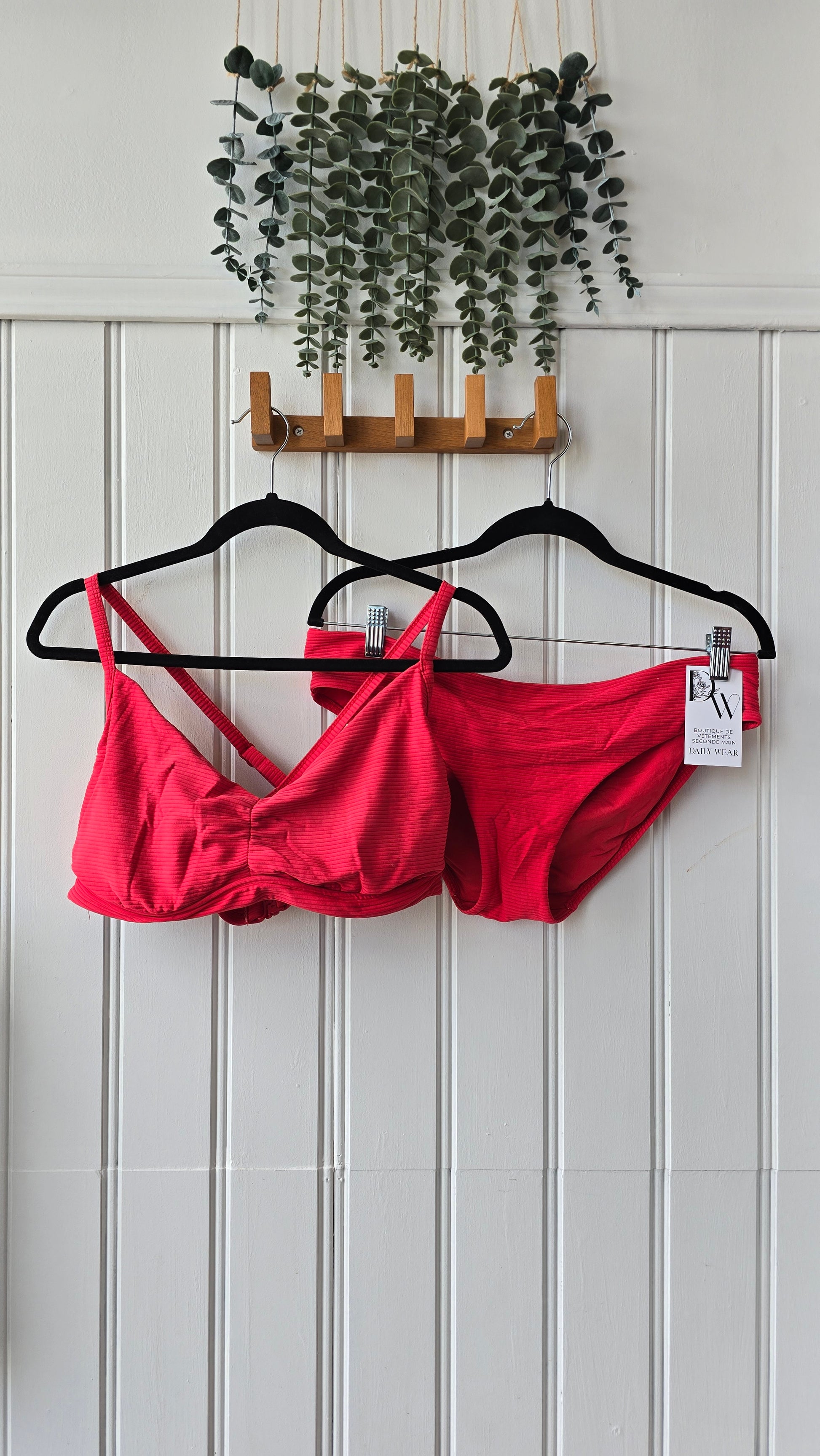 Conçu pour les grandes tailles, ce bikini rouge XLarge offre un soutien parfait pour les bonnets 16DD. Avec sa couleur éclatante et son design élégant, vous vous sentirez à l'aise et confiante à la plage ou autour de la piscine. Fabriqué avec des matériaux de qualité supérieure pour un ajustement parfait et une durabilité accrue.