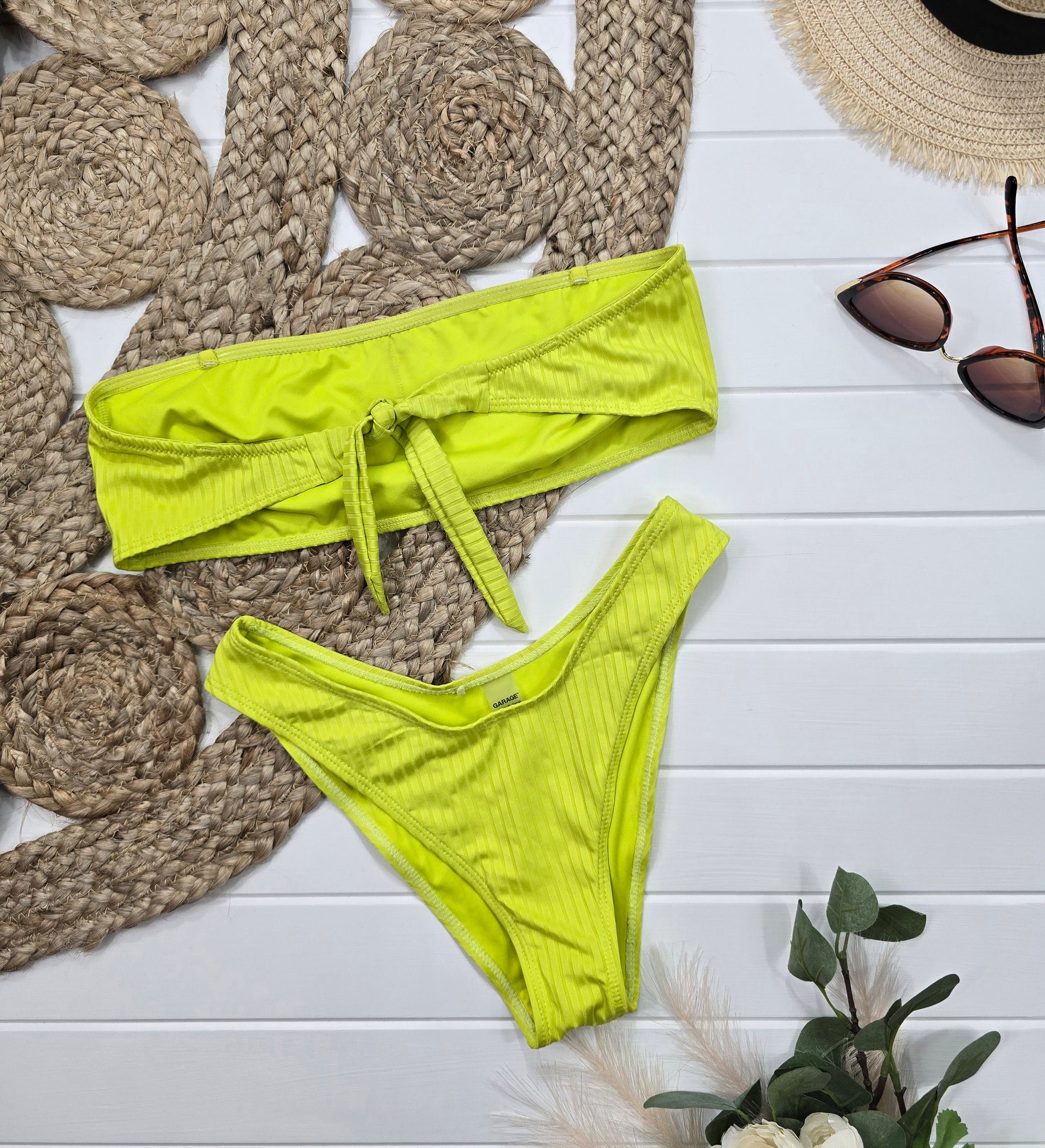 Découvrez notre Bikini Garage en vert fluo, parfait pour les journées ensoleillées ! Avec son haut de taille Médium et son bas de taille Small, il saura mettre en valeur votre silhouette. Les bretelles manquantes donnent une touche originale et tendance. Profitez de l'été avec style grâce à notre Bikini Garage.