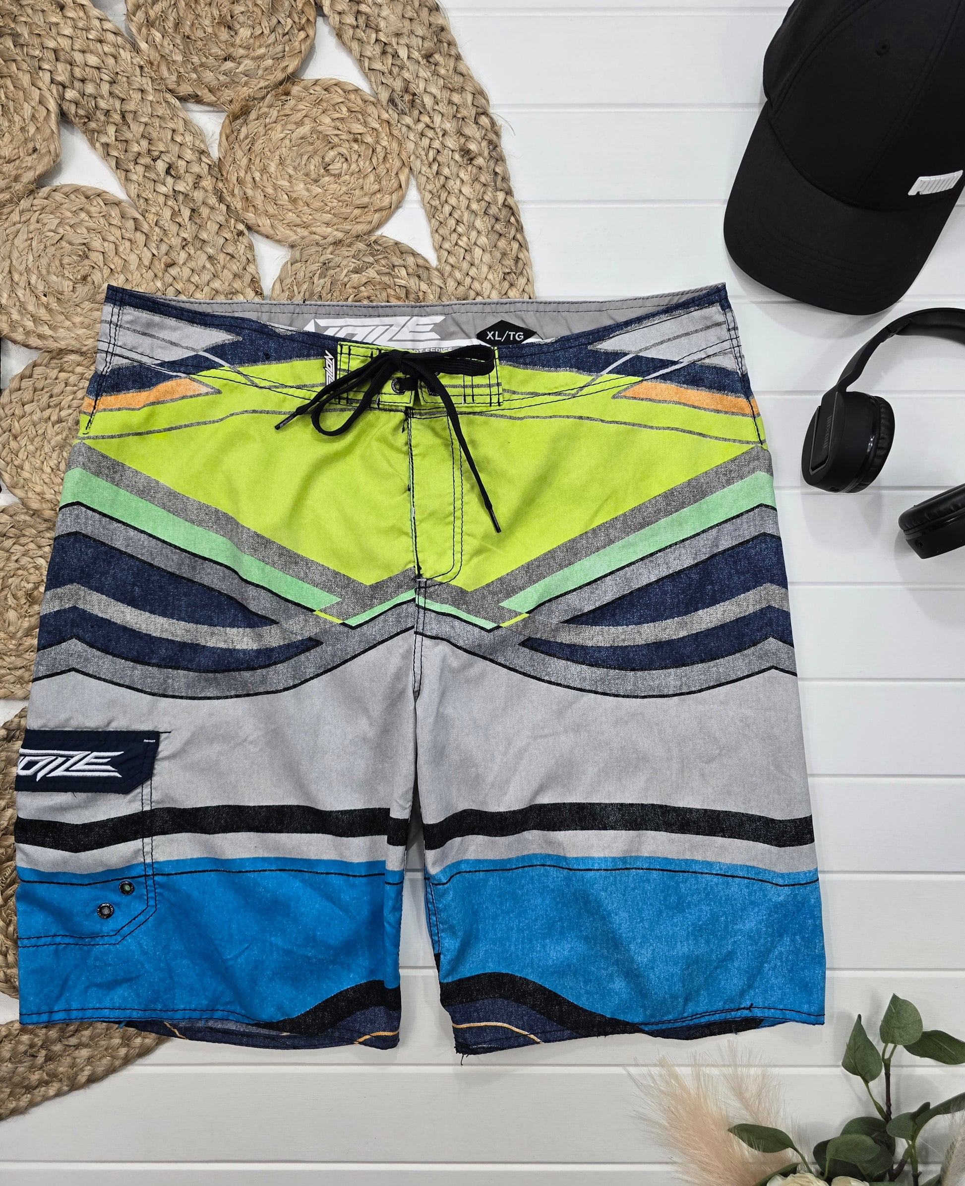 Ce caleçon de bain Noize en taille XL est parfait pour les journées à la plage ou à la piscine. Avec son design vert, gris et bleu, il allie confort et style. Profitez de ses couleurs vibrantes et de sa taille XL pour une liberté de mouvement maximale.