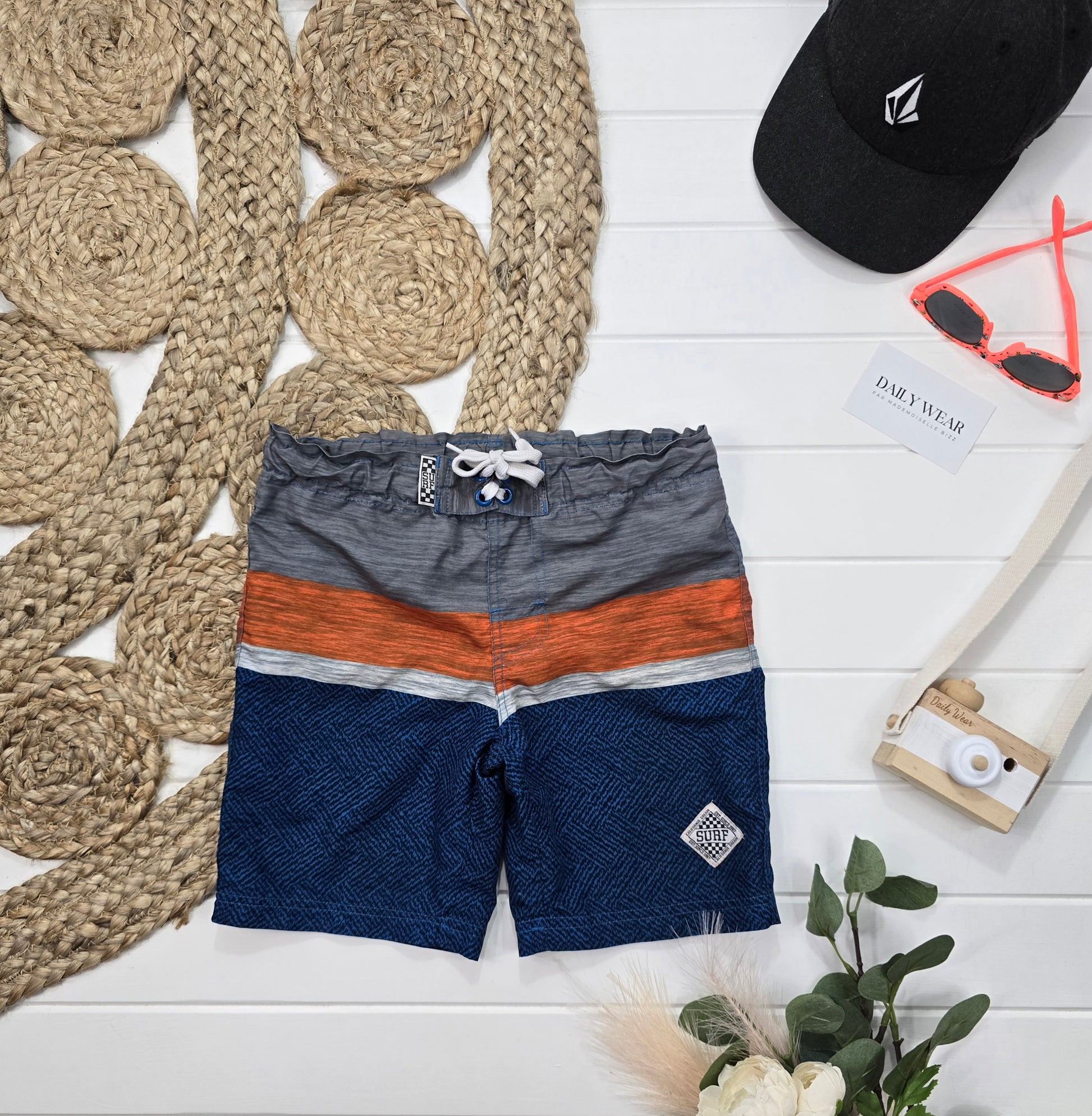 Profitez de vos vacances à la plage avec ce caleçon de bain Wifi de 6 ans. Avec ses couleurs bleu, orange et blanc, il est à la fois tendance et pratique. Profitez du confort et de la liberté de mouvement tout en restant connecté avec ce caleçon de bain innovant.