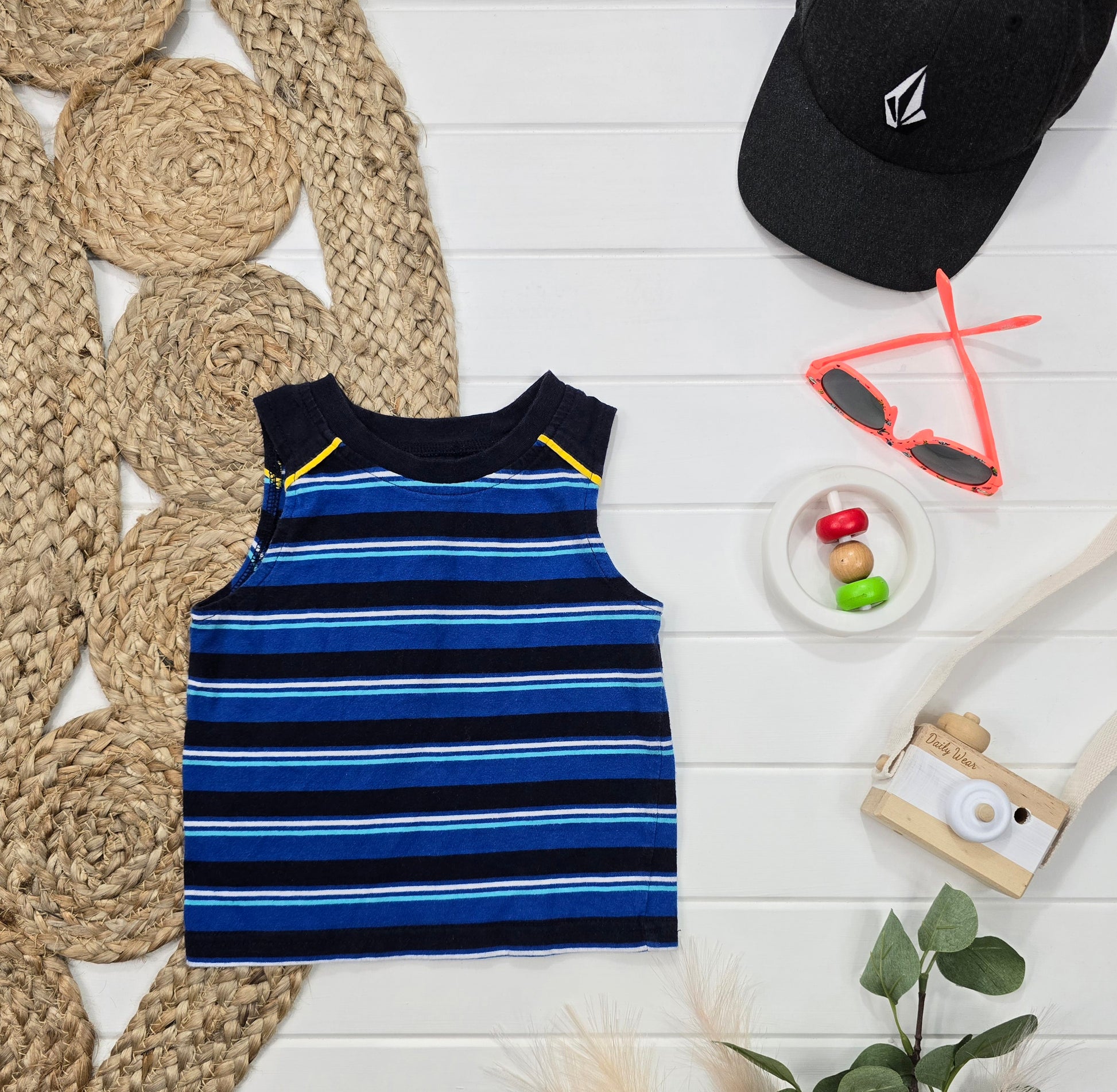 La Camisole George est le choix idéal pour les petits de 24 mois. Avec ses couleurs bleu ligné noir, blanc et turquoise, cette camisole est à la fois tendance et confortable. Gardez votre bébé au frais et à l'aise tout en lui offrant un style unique avec cette camisole de qualité supérieure.