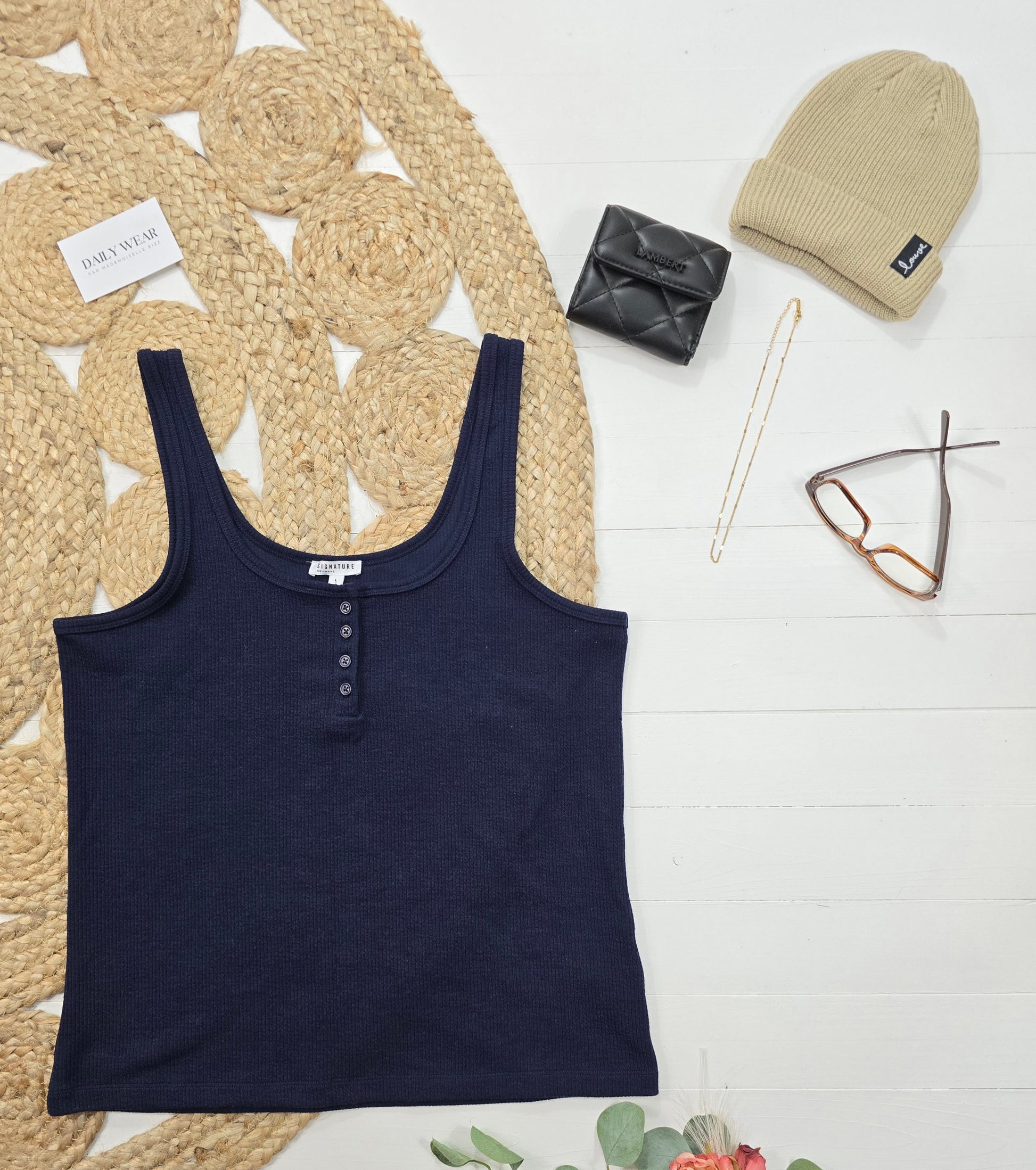 Donnez à votre garde-robe une touche de plaisir avec notre camisole Reitmans Signature! Avec ses 4 boutons à la poitrine et sa couleur bleu foncé, cette camisole ajoutera une touche tendance à n'importe quelle tenue. Parfait pour un look décontracté et élégant, cette camisole est un must-have pour toutes les occasions!