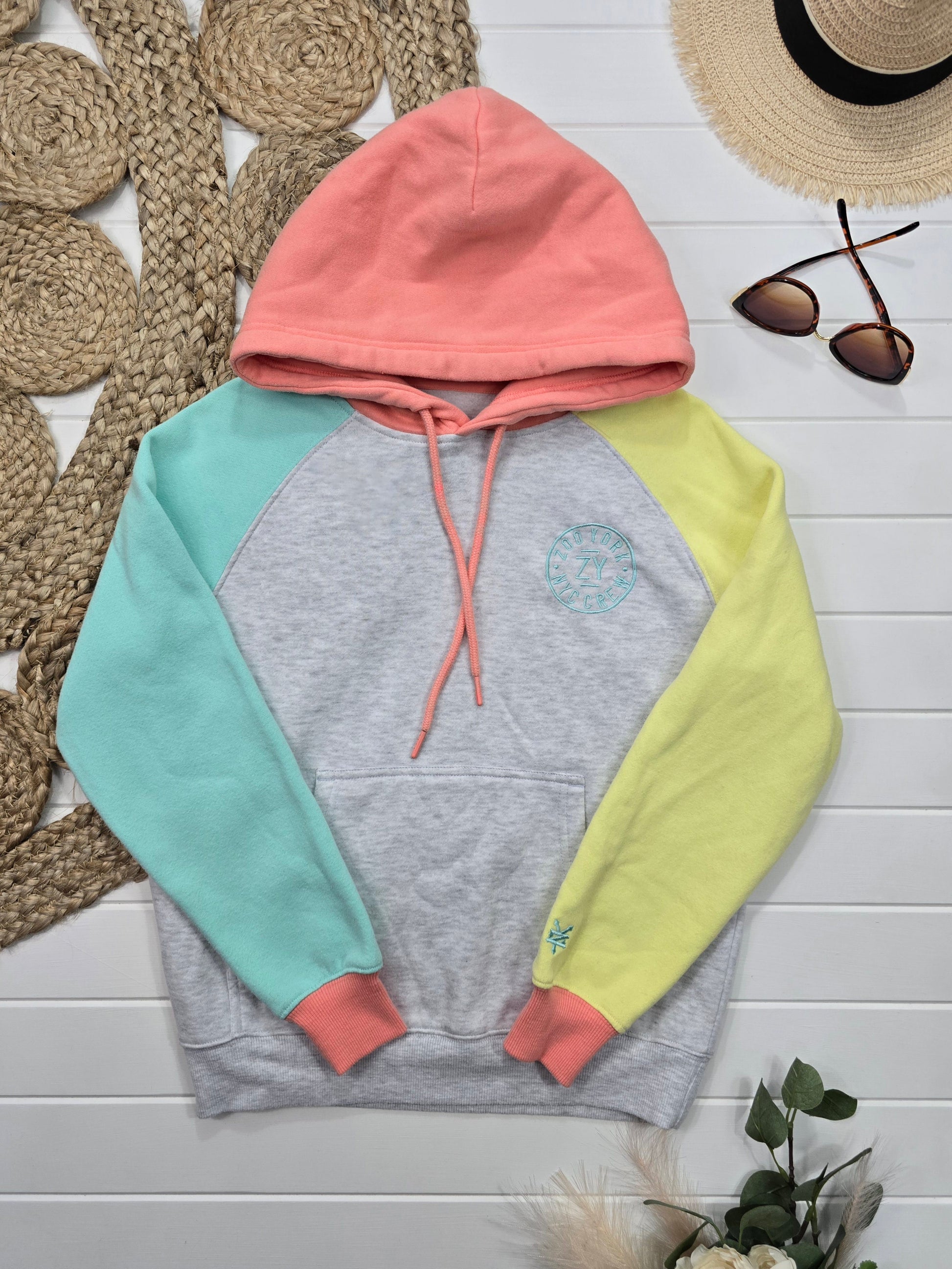 Ce chandail à capuchon Zoo York est le choix parfait pour les amateurs de mode urbaine. En gris avec des accents jaunes, verts et coraux, il se démarque par son design tendance. Conçu en taille XSmall, il est confortable et stylé. Parfait pour un look moderne et avant-gardiste.