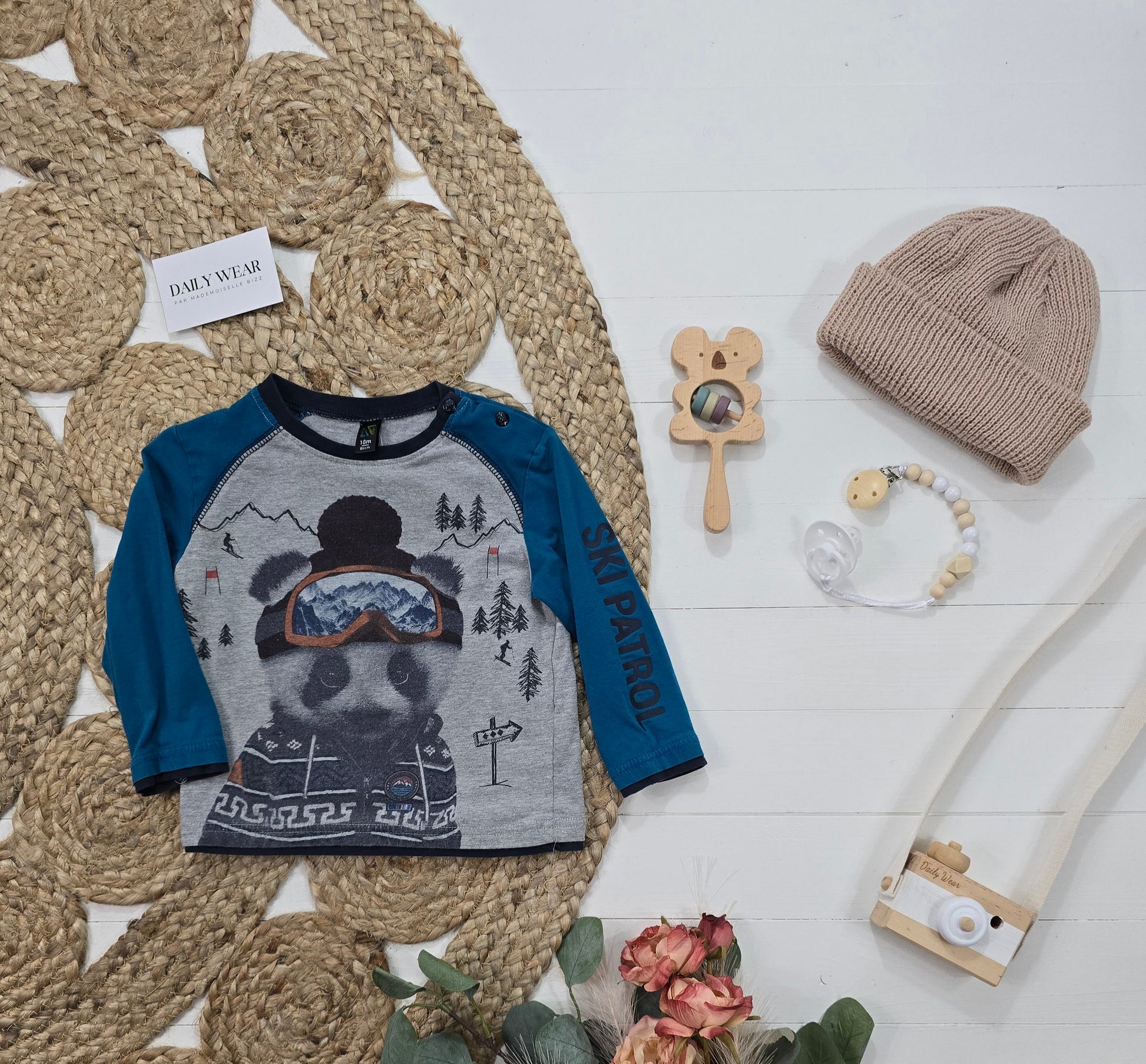 Ce chandail Nanö pour bébé de 18 mois met en vedette un panda habillé pour le ski. Fabriqué avec soin et attention aux petits détails, ce chandail apporte du style et de la chaleur à votre tout-petit. Idéal pour les aventures en plein air ou les journées à la maison, ce chandail sera un favori pour les parents et les enfants passionnés de ski!