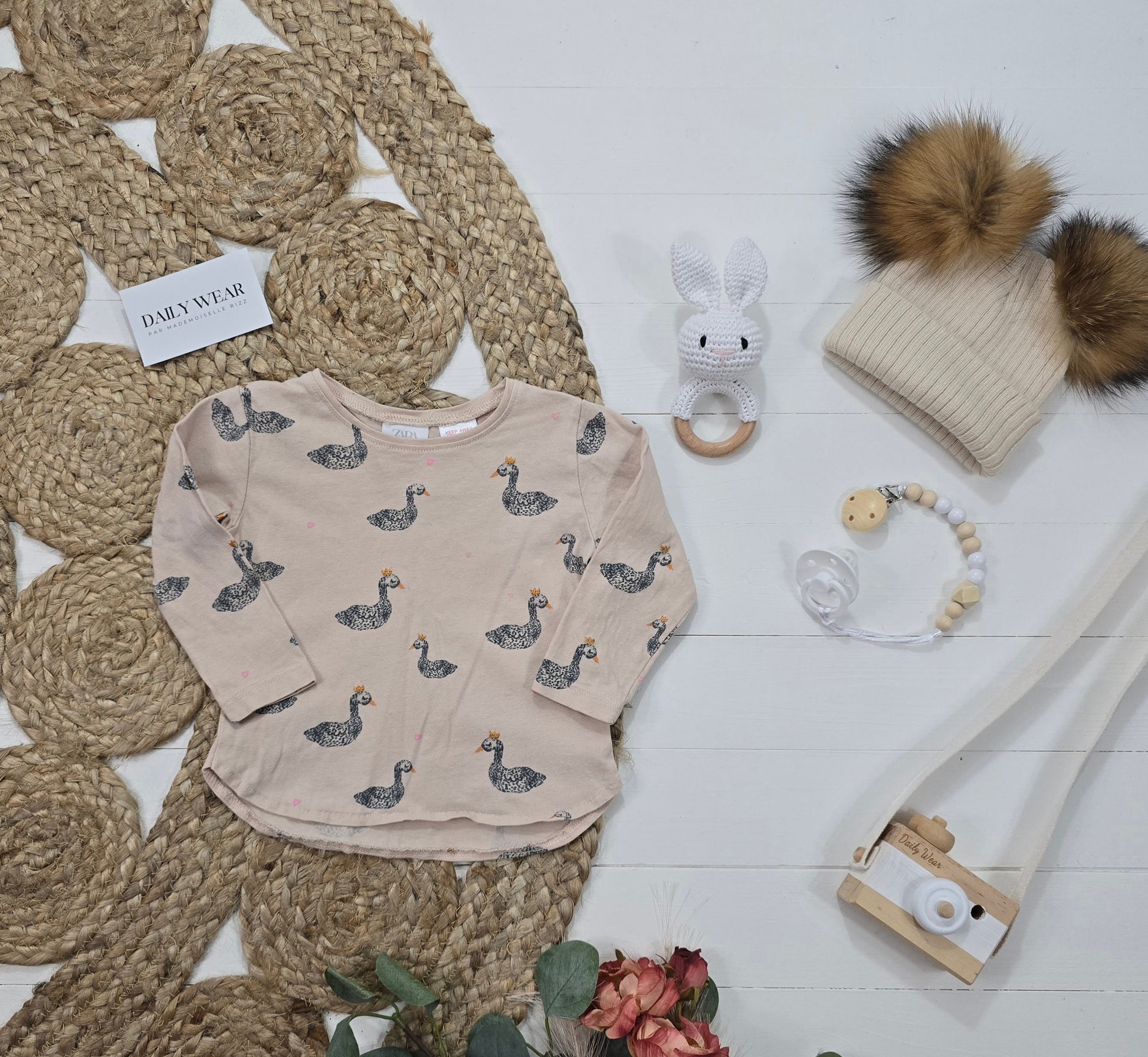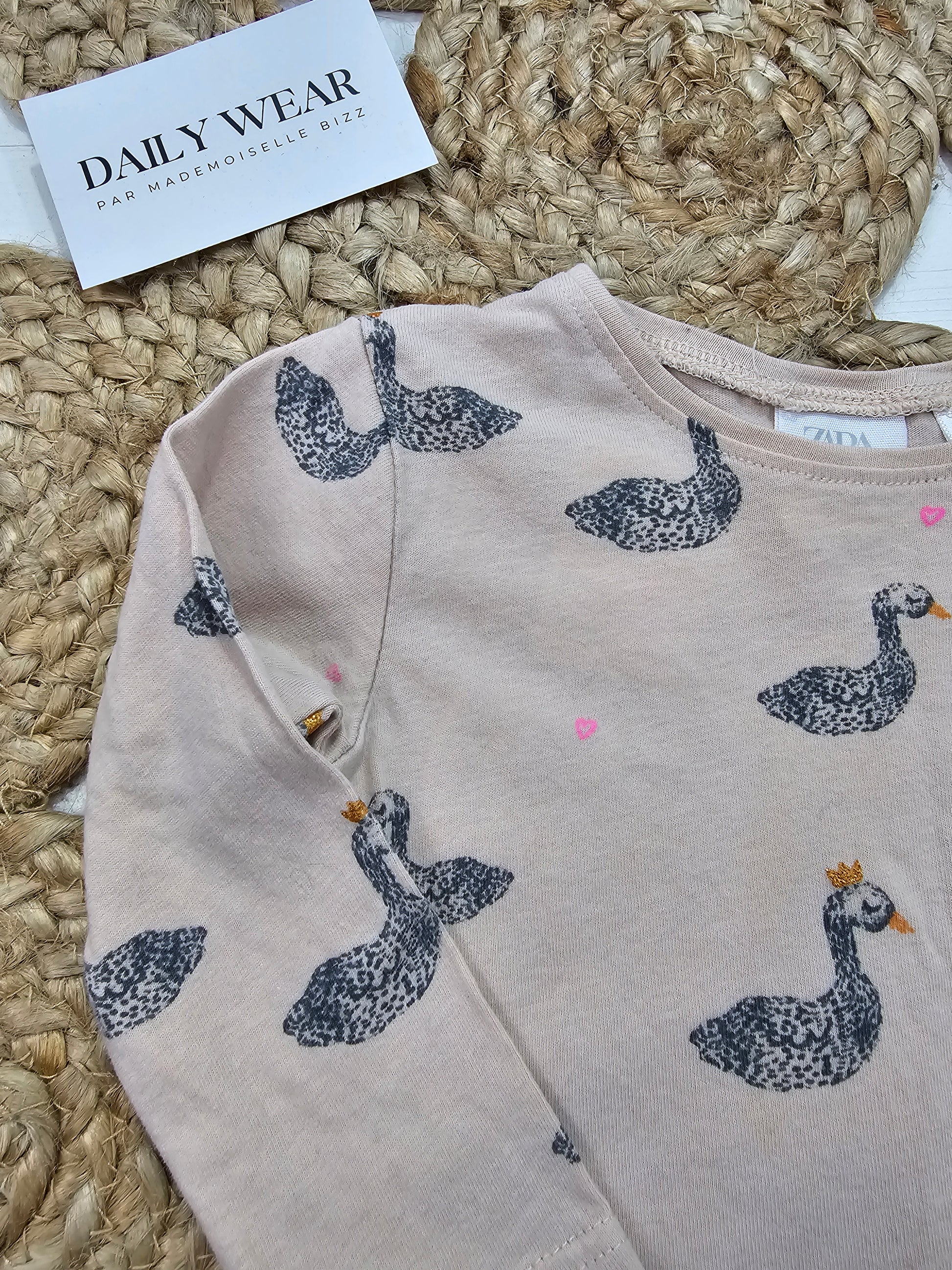 Ce chandail Zara pour bébé, taille 6-9 mois, est un vrai petit trésor! Avec son design unique en forme de rose portant une couronne de signes, votre bébé sera le plus mignon de la garderie. Garantie d'attirer des sourires et des compliments, ce chandail apportera une touche de fantaisie à la garde-robe de votre bébé.