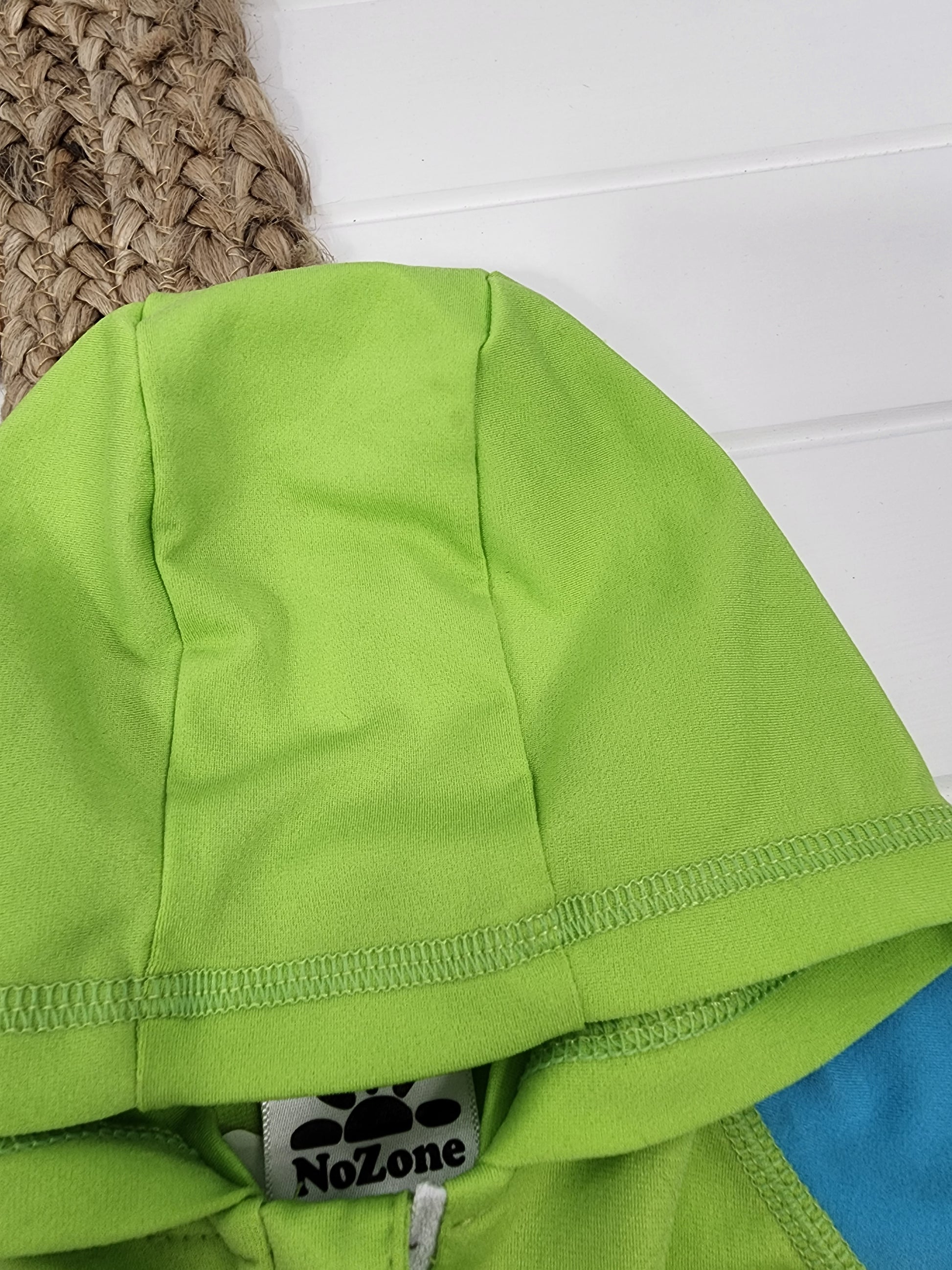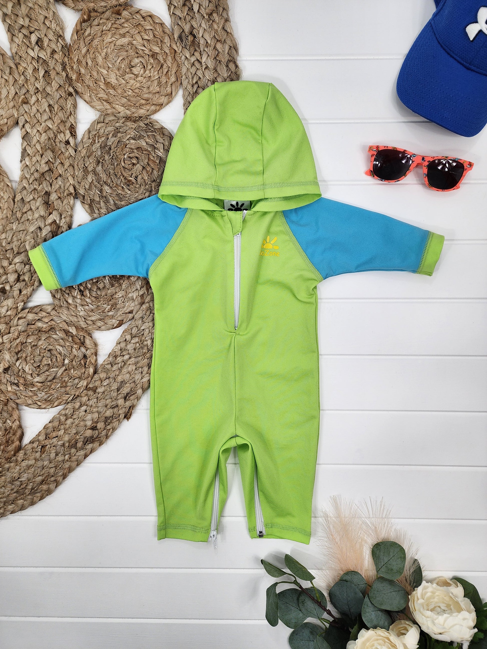 Cette combinaison de bain Nozone est parfaite pour garder votre tout-petit à l'aise et sécuritaire lors de sa baignade. Avec sa couleur verte et ses manches bleus, elle est à la fois mignonne et pratique. Le capuchon protège la tête de bébé et lui apporte un confort supplémentaire. Idéale pour les bébés de 0 à 6 mois.