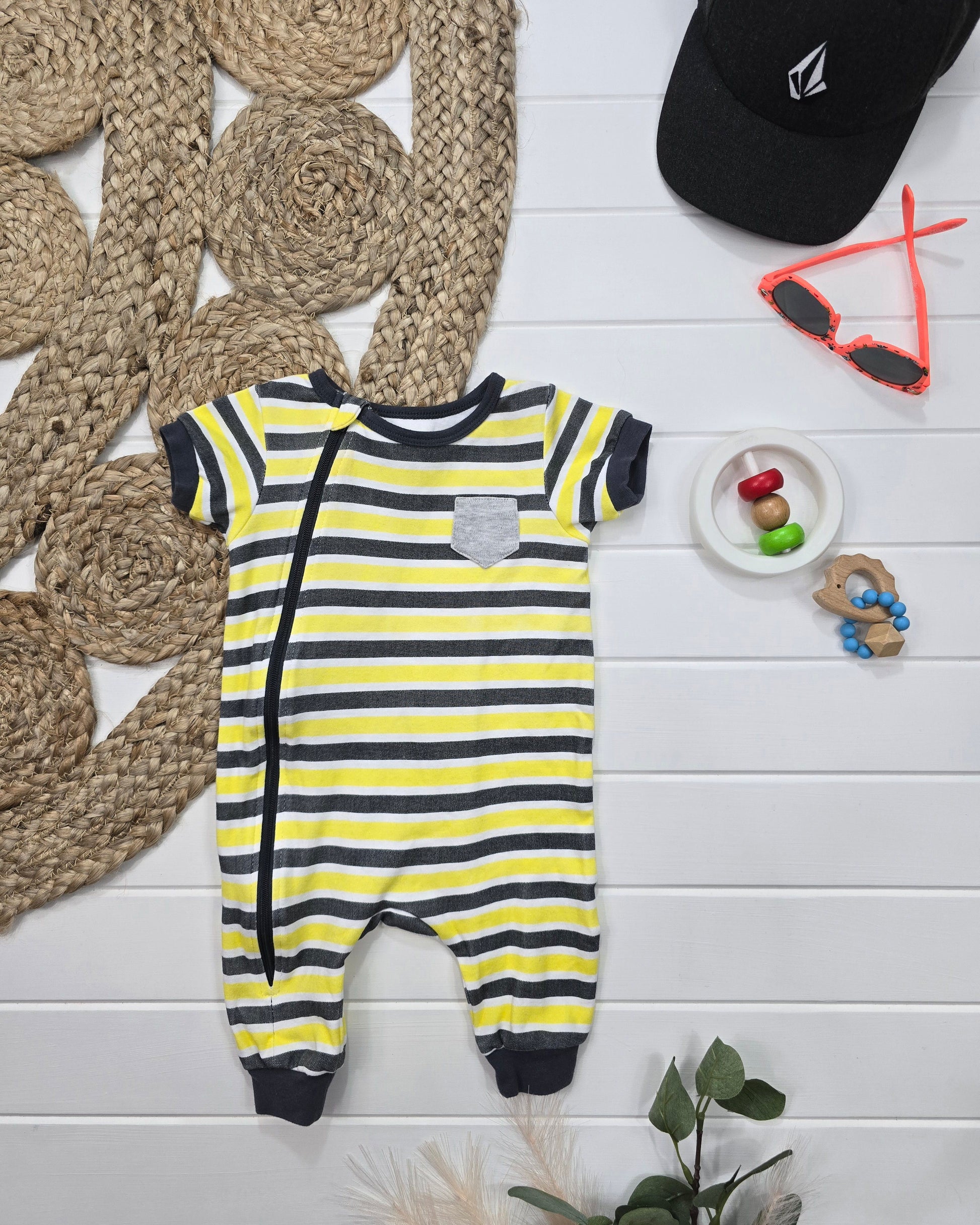 Découvrez notre Combinaison GagouTagou pour bébé de 3 mois, en gris, blanc et jaune! Cette combinaison peut également être utilisée comme pyjama, pour un confort optimal de votre petit trésor. Un choix pratique, original et adorable pour votre bébé !
