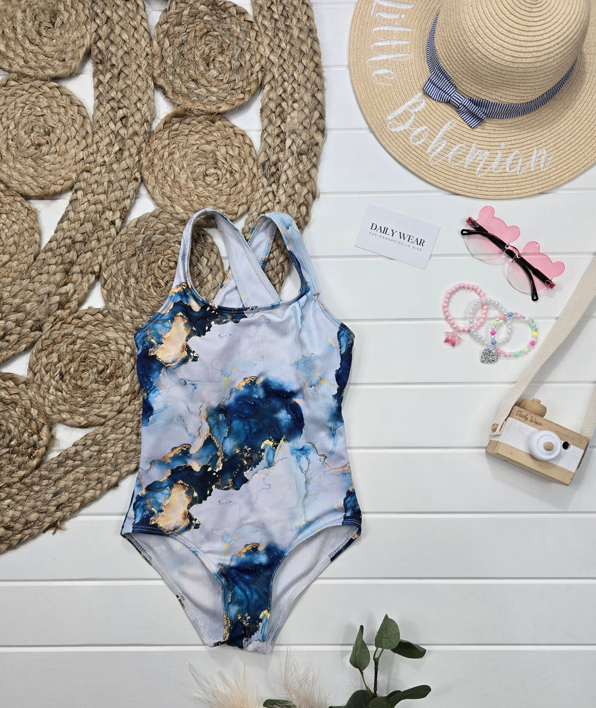 Ce costume de bain Shein, pour enfants de 7-8 ans, est à la fois élégant et confortable. Fabriqué avec un mélange de tissus blancs, bleus et dorés, il offre un style unique pour les activités de baignade. Les matériaux de qualité supérieure et les couleurs vibrantes en font un choix idéal pour les jeunes nageurs.