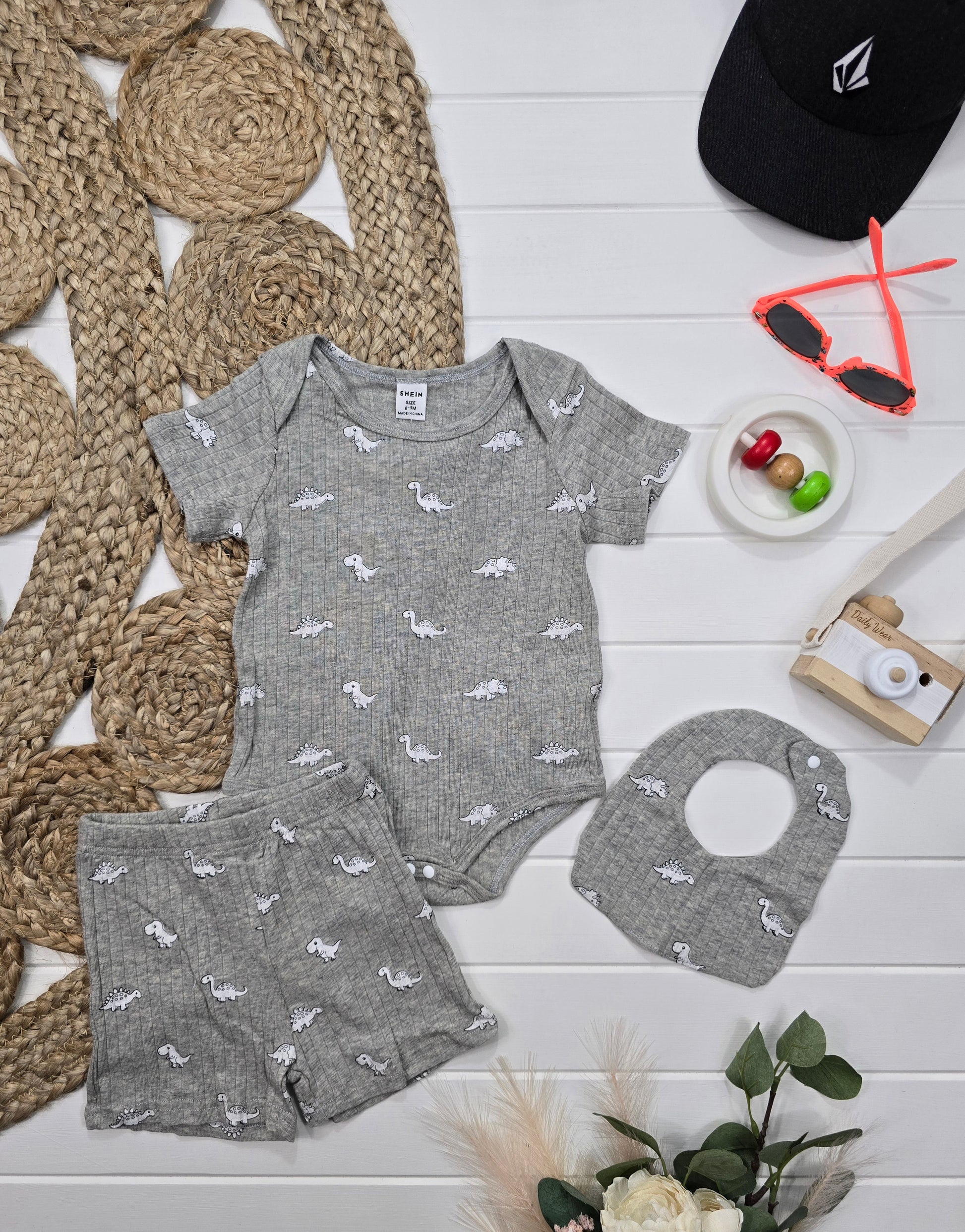 Cet ensemble Shein comprend un cache-couche, un short et un bavoir avec des motifs de dinosaures. Idéal pour les bébés de 6 à 9 mois, cet ensemble est à la fois confortable et mignon. Fabriqué à partir de matériaux de qualité, il est neuf et parfait pour garder votre bébé à la mode.