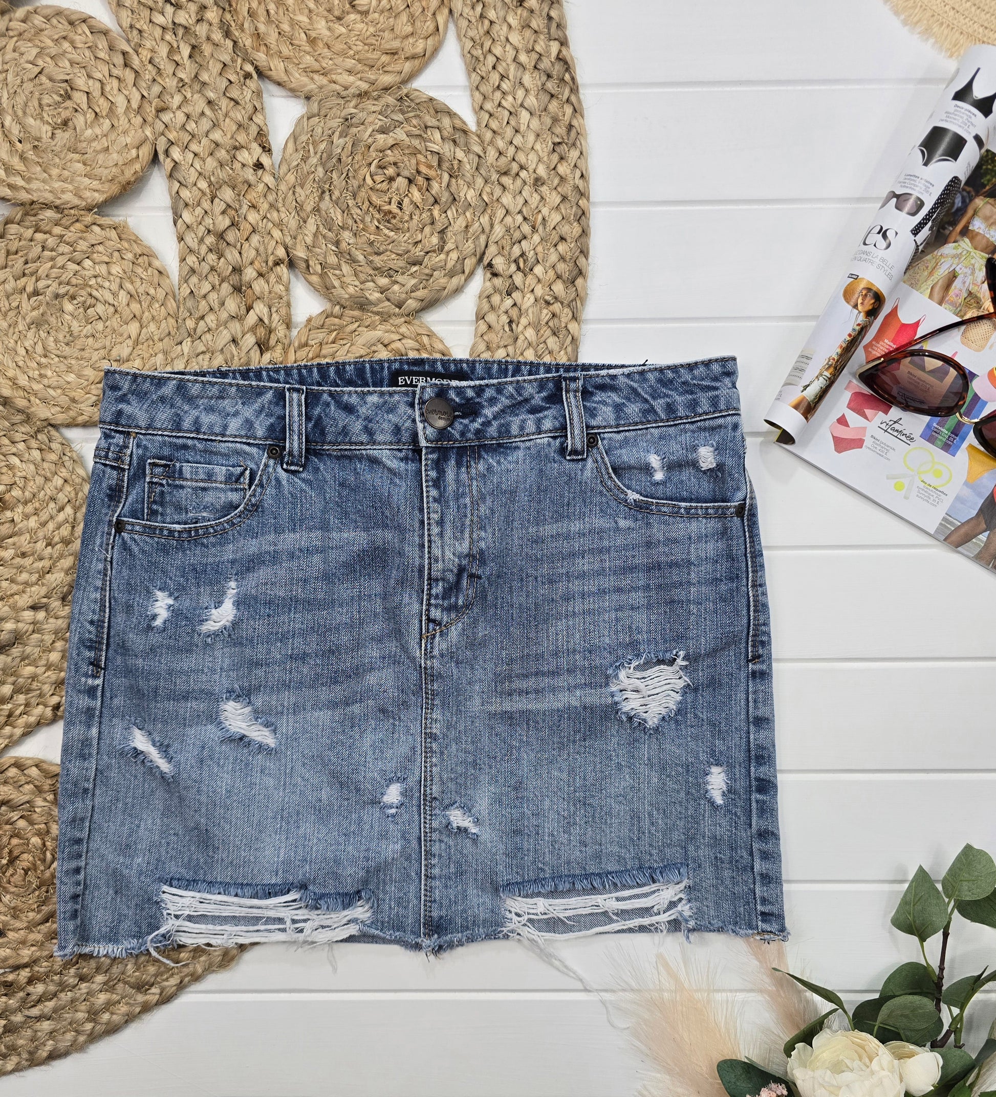 Découvrez la jupe Evermore en jeans, d'une belle grandeur 7, avec des effets usés pour un style unique et authentique. Fabriquée avec un tissu de qualité supérieure, elle sera votre pièce maîtresse pour un look élégant et sophistiqué. Ajoutez-la à votre garde-robe pour une touche de luxe dans vos tenues.