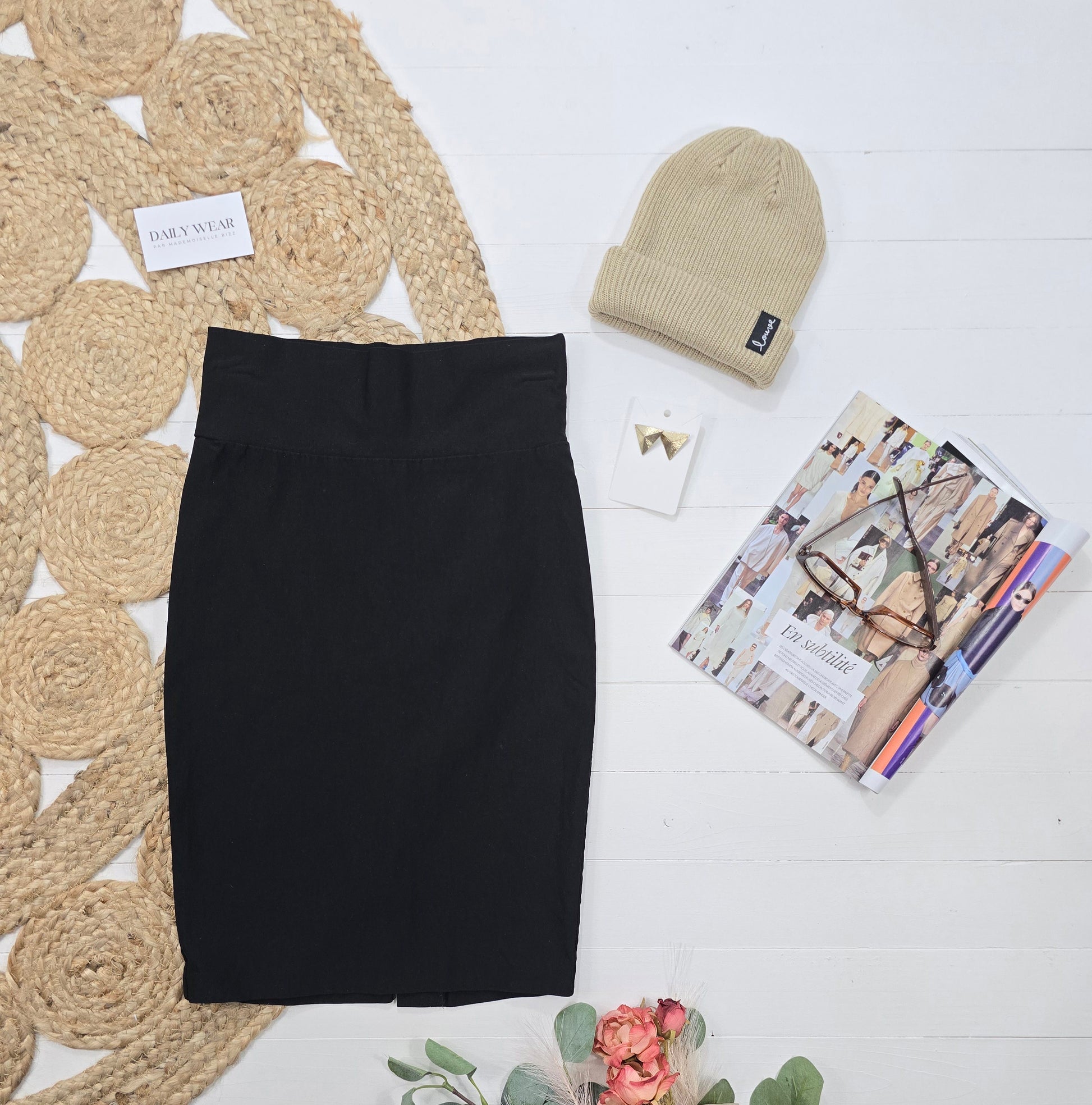 Cette jupe noire extensible de Twik ajoutera une touche de style à votre garde-robe. Avec une fente à l'arrière, elle allie confort et élégance. Parfaite pour toute occasion, elle deviendra rapidement un de vos essentiels. Taille XS.