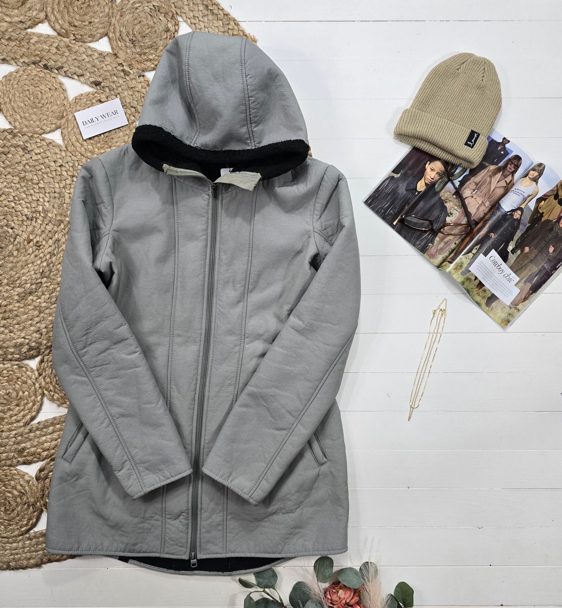 Ce manteau Bench en gris offre une coupe medium et du sherpa noir à l'intérieur pour un look et un confort optimal. Parfait pour affronter le froid avec style et originalité. (Restez au chaud avec style!)