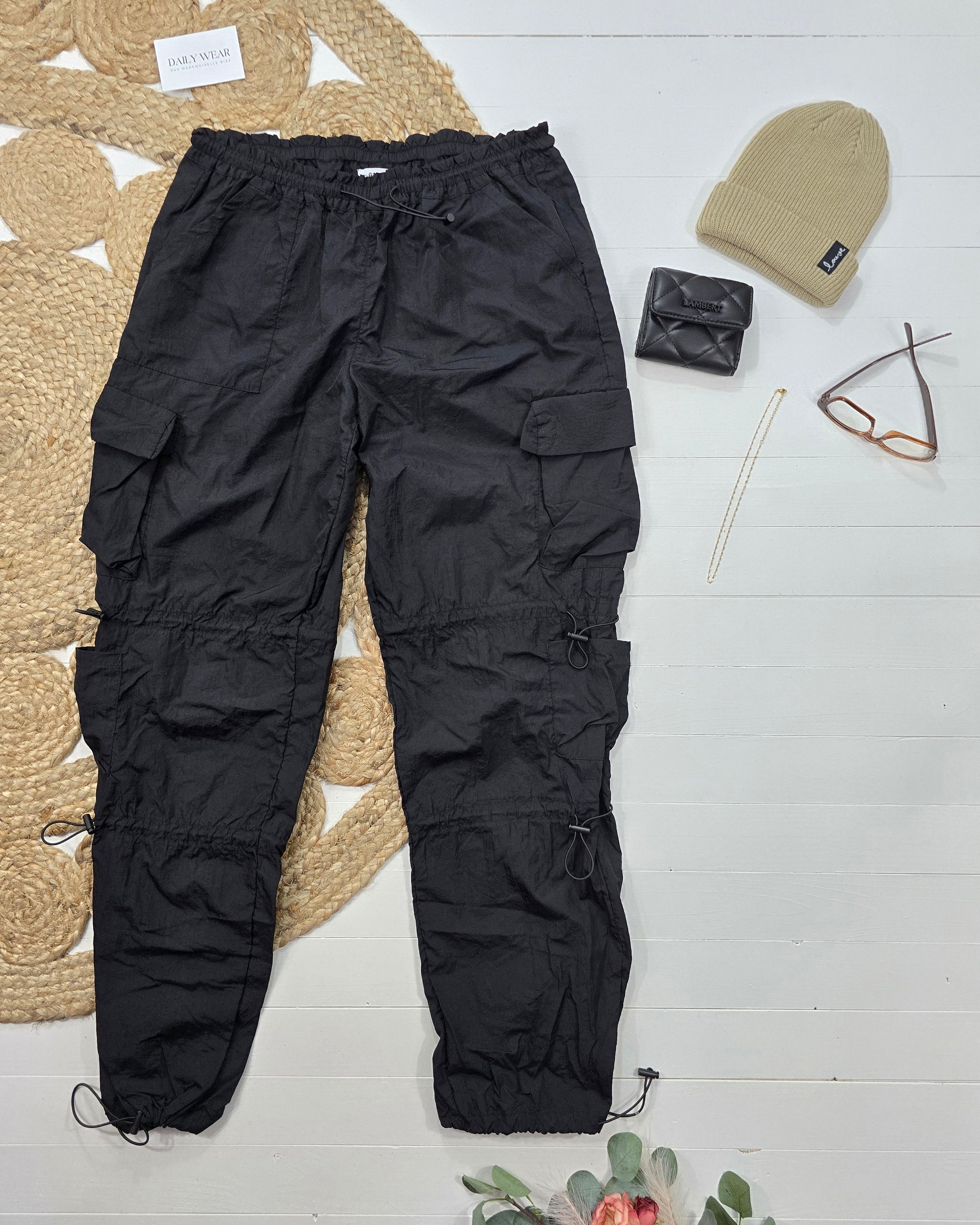Ce pantalon Garage est parfait pour un look décontracté ! Avec son style baggy noir et ses poches pratiques, vous pourrez facilement ranger vos objets essentiels. Les élastiques ajoutent une touche de confort pour une tenue facile à porter toute la journée. Idéal pour toutes les occasions !