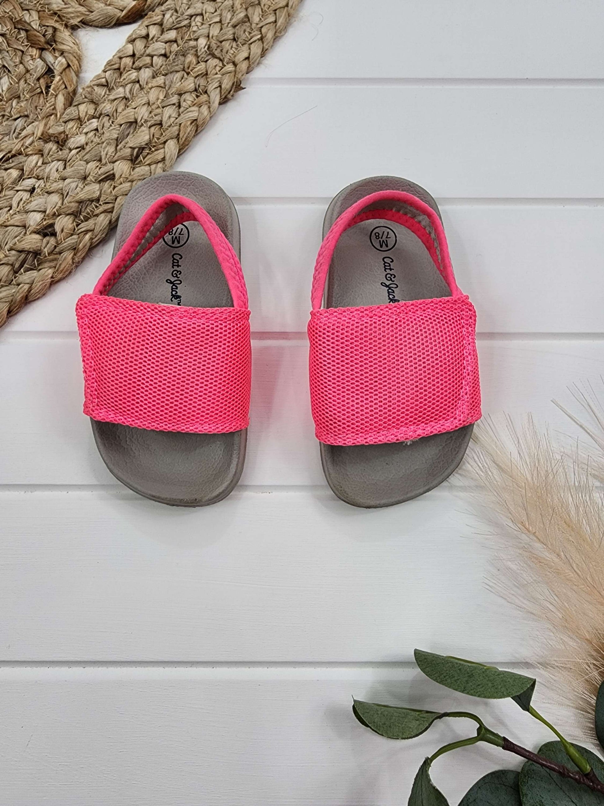 Ces sandales Cat&Jack, portées une fois, sont parfaites pour se distinguer avec style! Taille 7-8, elles vous offrent un confort optimal tout en ajoutant une touche unique à votre tenue. Découvrez le plaisir de marcher avec ces sandales uniques en leur genre!