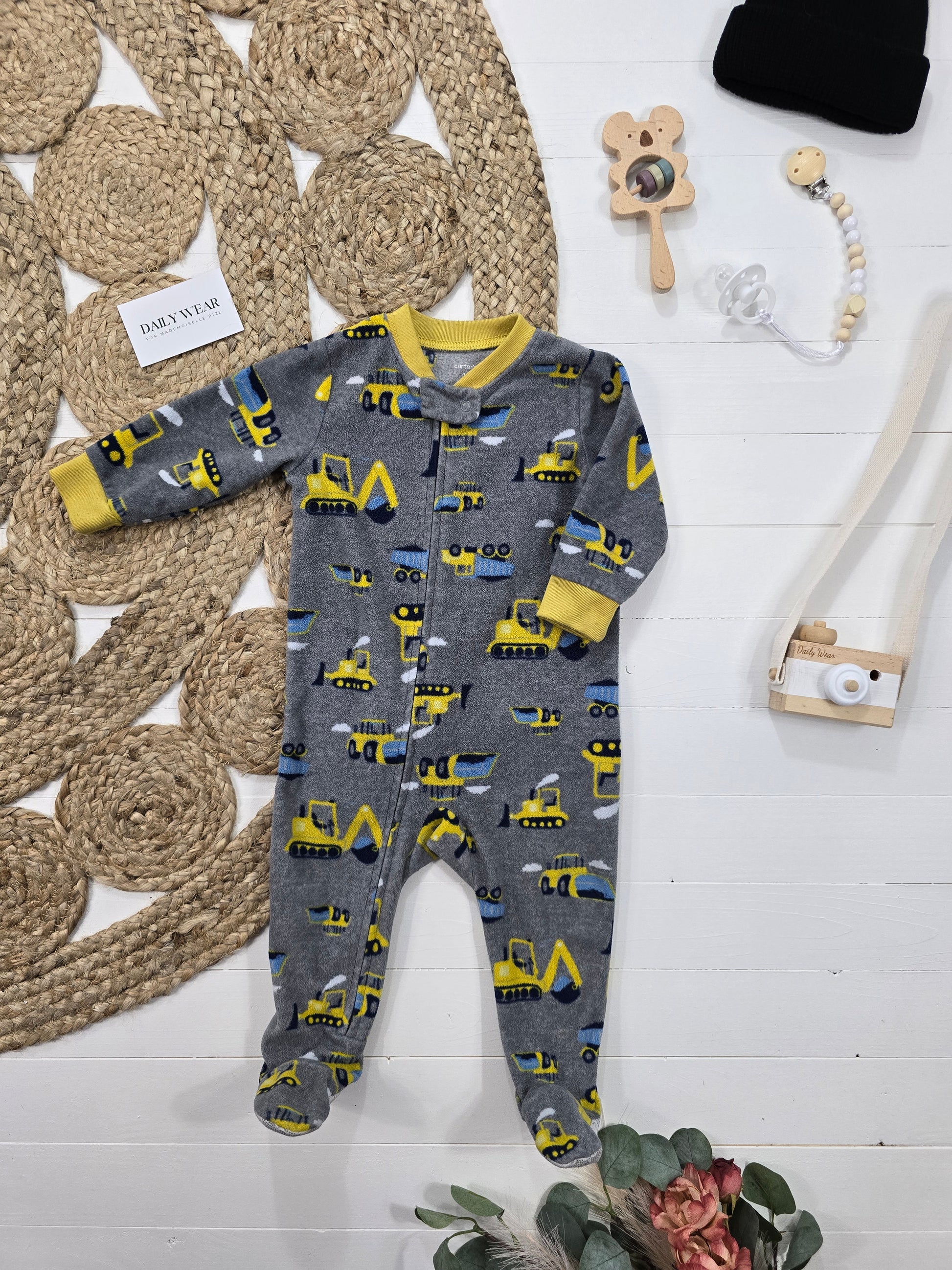 Améliorez les nuits de sommeil de votre petit camionneur avec ce pyjama en polars gris et jaune. Avec des motifs de camions de construction, il sera prêt pour une bonne nuit de travail (ou de sommeil). Taille 12 mois.