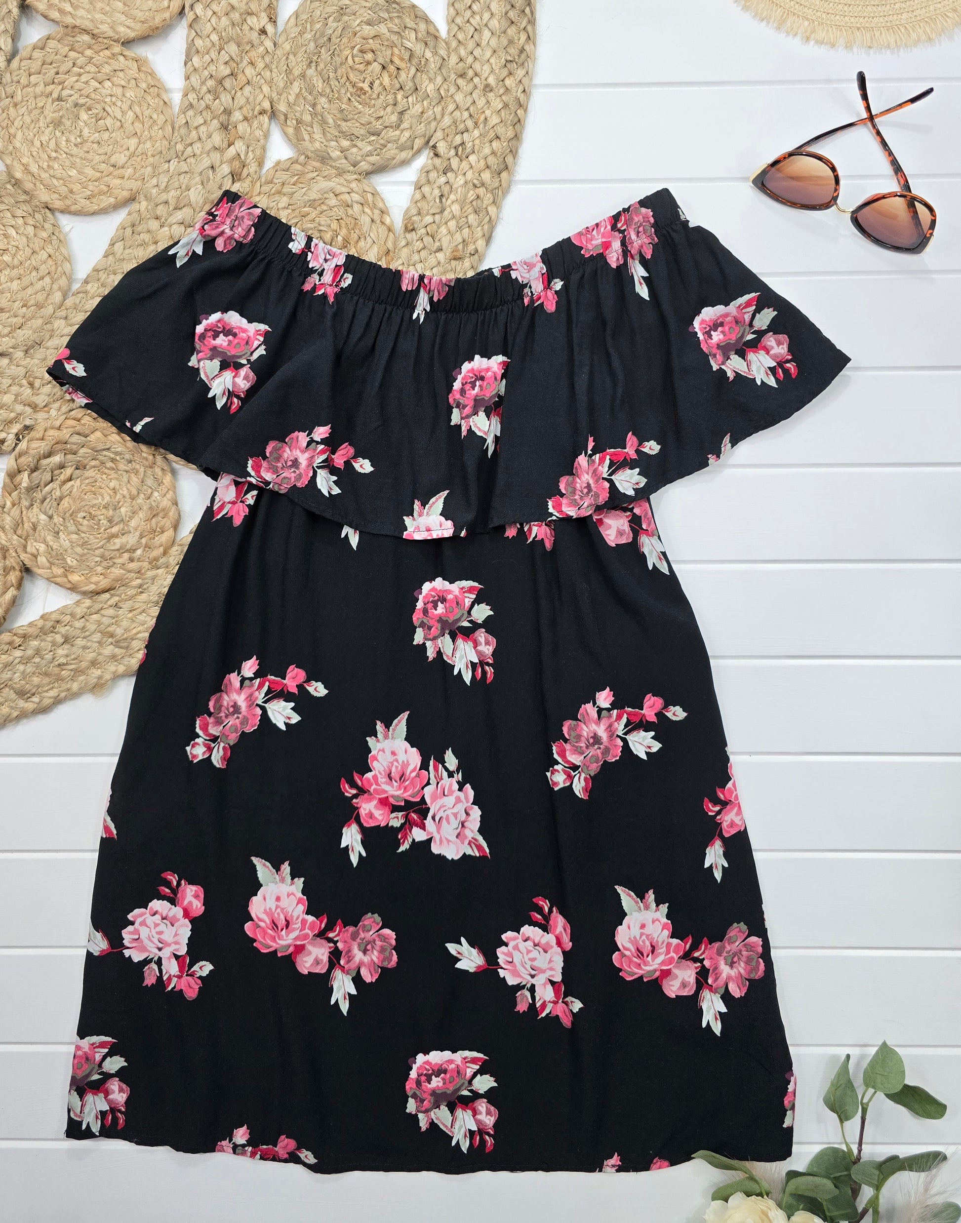 Découvrez notre magnifique robe Ardène noir fleuris pour médium avec de sublimes épaules dénudées. Parfaite pour toutes les occasions, cette robe vous fera sentir belle et élégante grâce à son design unique et sa coupe flatteuse. Ajoutez-la à votre garde-robe dès maintenant et soyez la plus belle femme dans la pièce !