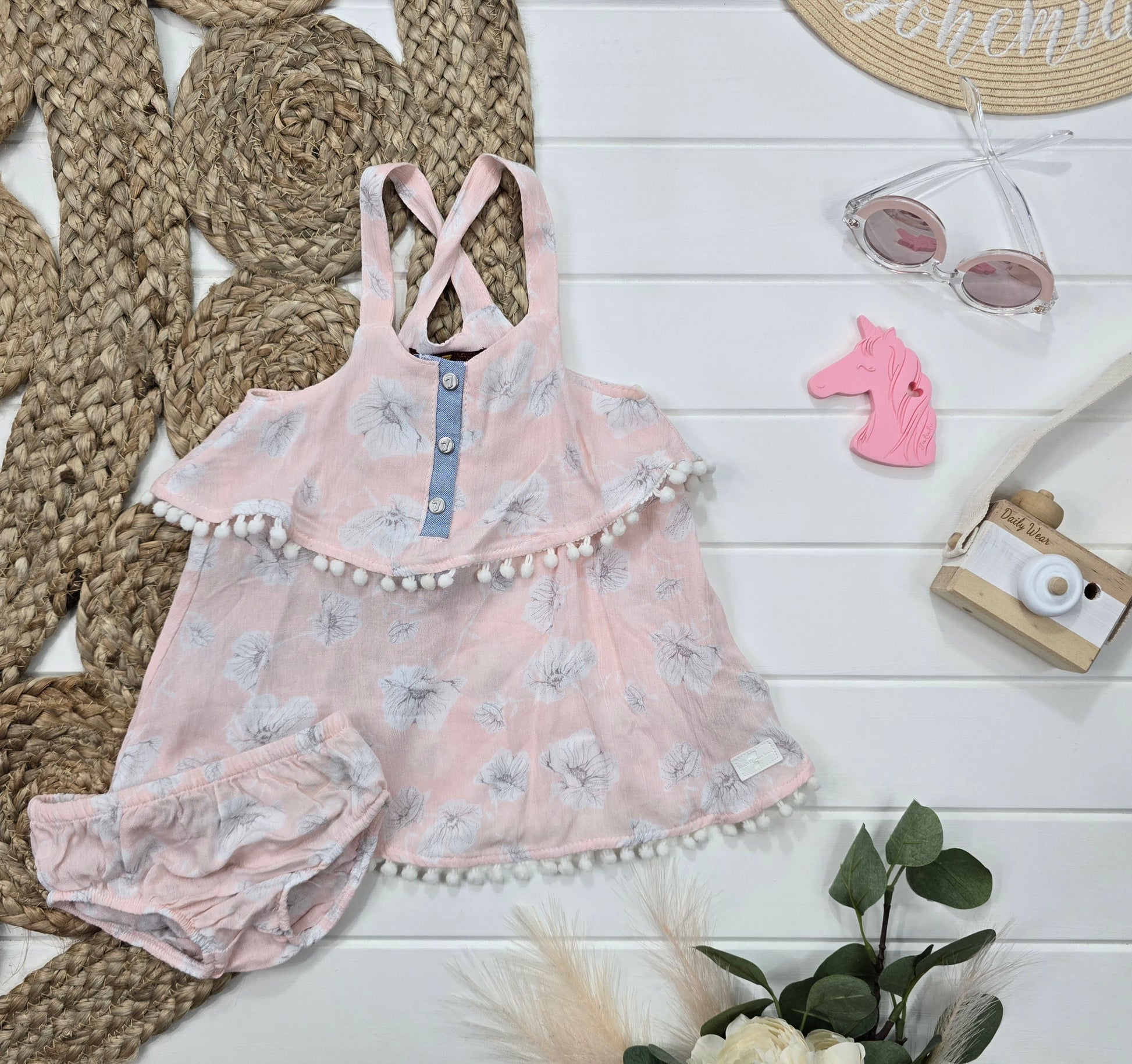Pour les petites fashionistas en herbe ! La robe For all 7 mankind, tailles 6-9 mois, est l'élément indispensable de toute garde-robe avec sa couleur rose et ses fleurs blanches. Comprend également une ravissante culotte assortie.