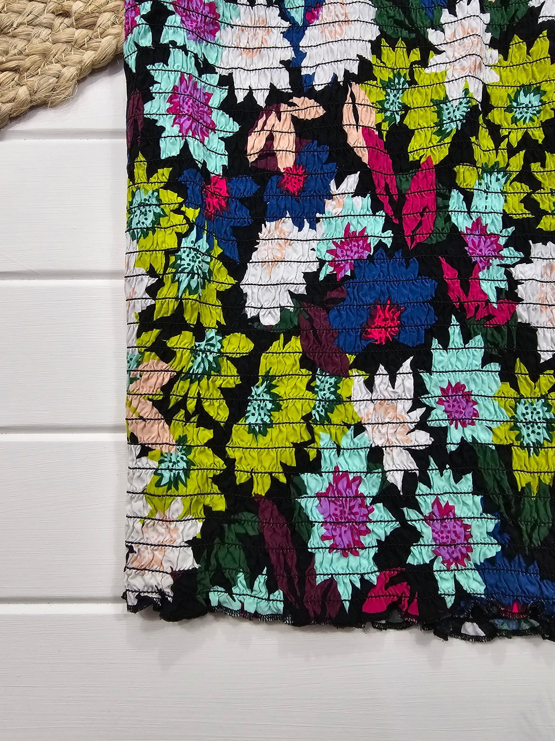 La robe Guess est un incontournable pour les adeptes de la mode. En noir avec des motifs fleuris en blanc, rose, bleu, turquoise et vert, elle est élégante et tendance. Sans manches et avec une corde ajustable au cou, elle s'adapte à toutes les silhouettes. Son style ruche d'abeilles ajoutera une touche originale à votre tenue.