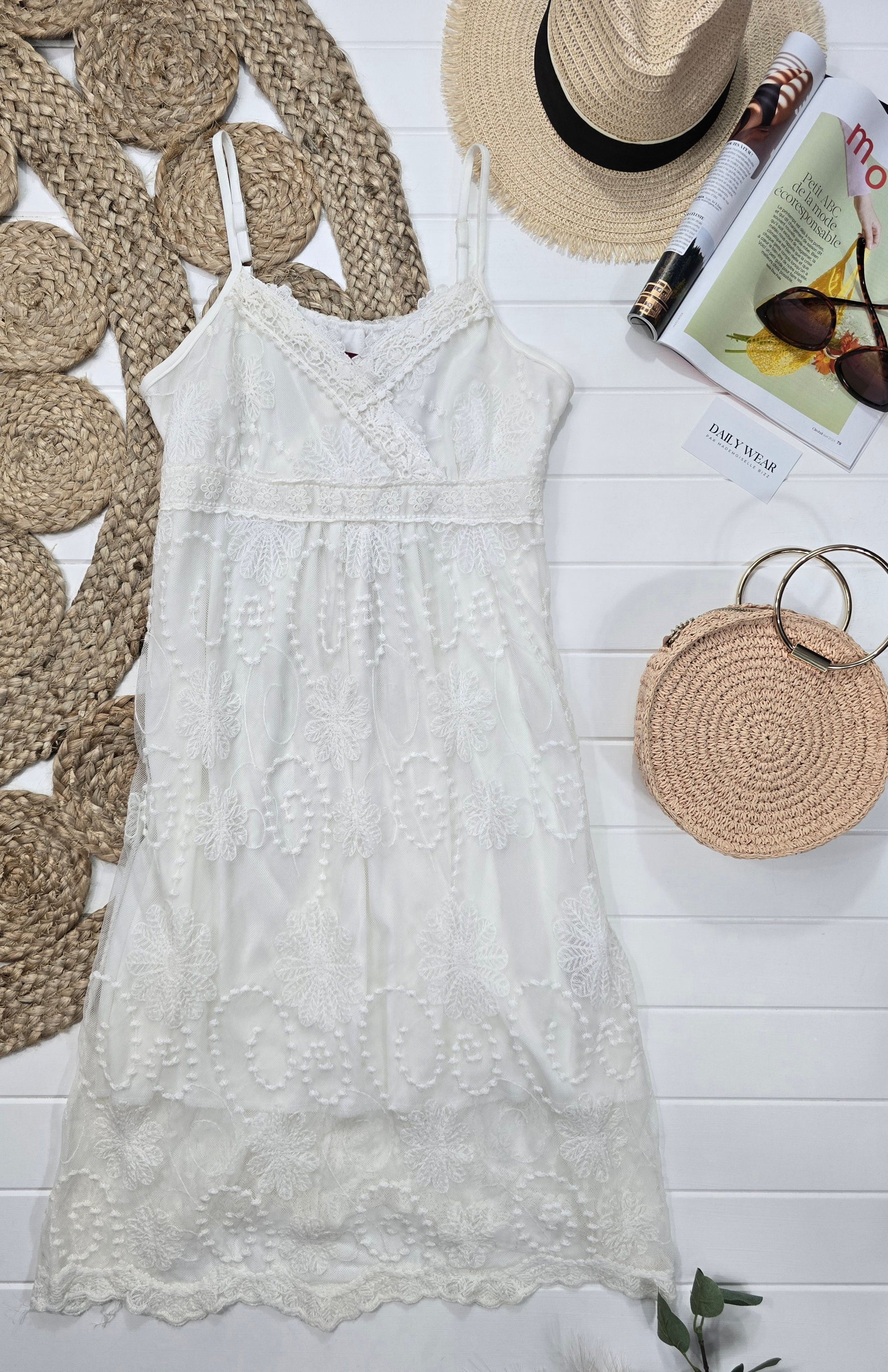 La robe San Francisco est un choix élégant et confortable pour toutes les occasions. Avec sa dentelle délicate et sa couleur blanche intemporelle, cette robe ajoute une touche de féminité à votre garde-robe. Fabriquée en taille petite, elle offre un ajustement parfait pour mettre en valeur votre silhouette. Un must-have pour les amateurs de mode et les amoureux de confort.