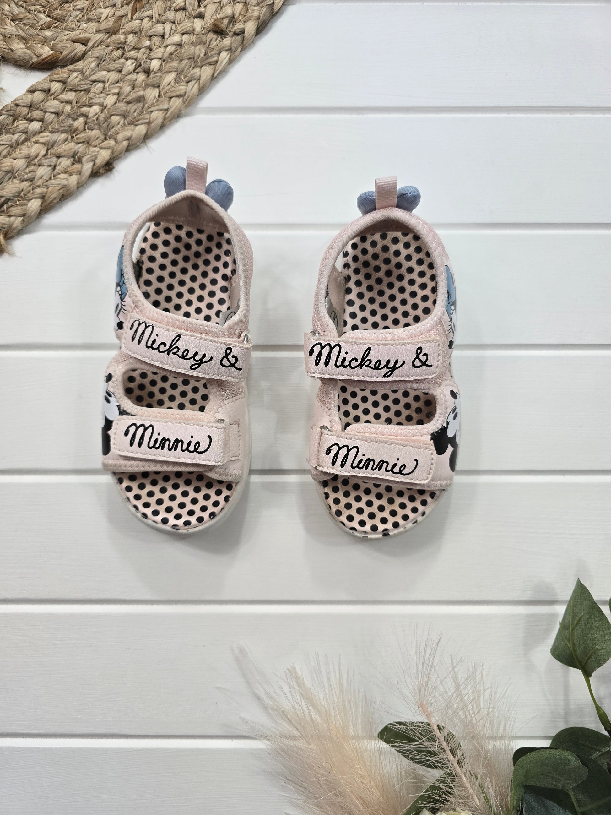 Offrez à votre enfant ces sandales Disney roses pâles en taille 10,5 avec le visage de Mini et Mickey sur les côtés. La fermeture velcro pratique et la boucle bleue à l'arrière les maintiendront bien en place pour toutes ses aventures. Un must-have pour tous les petits fans de Disney.