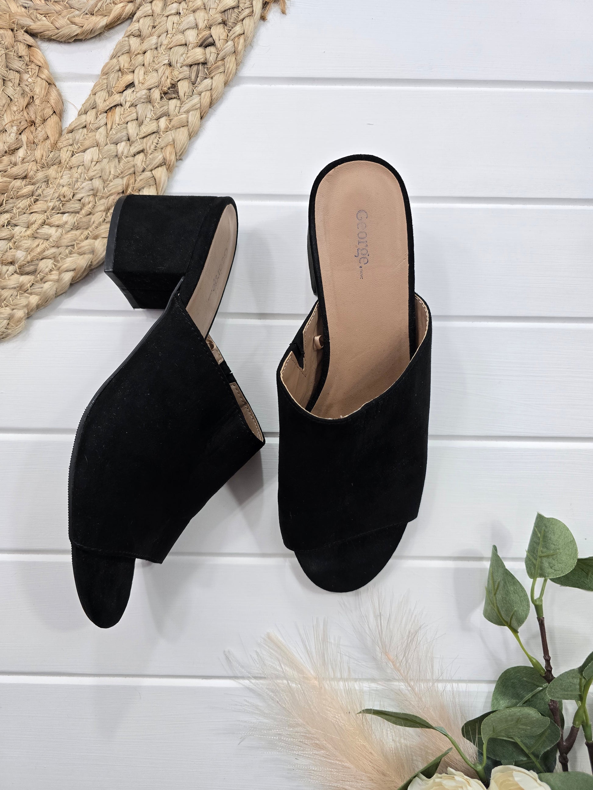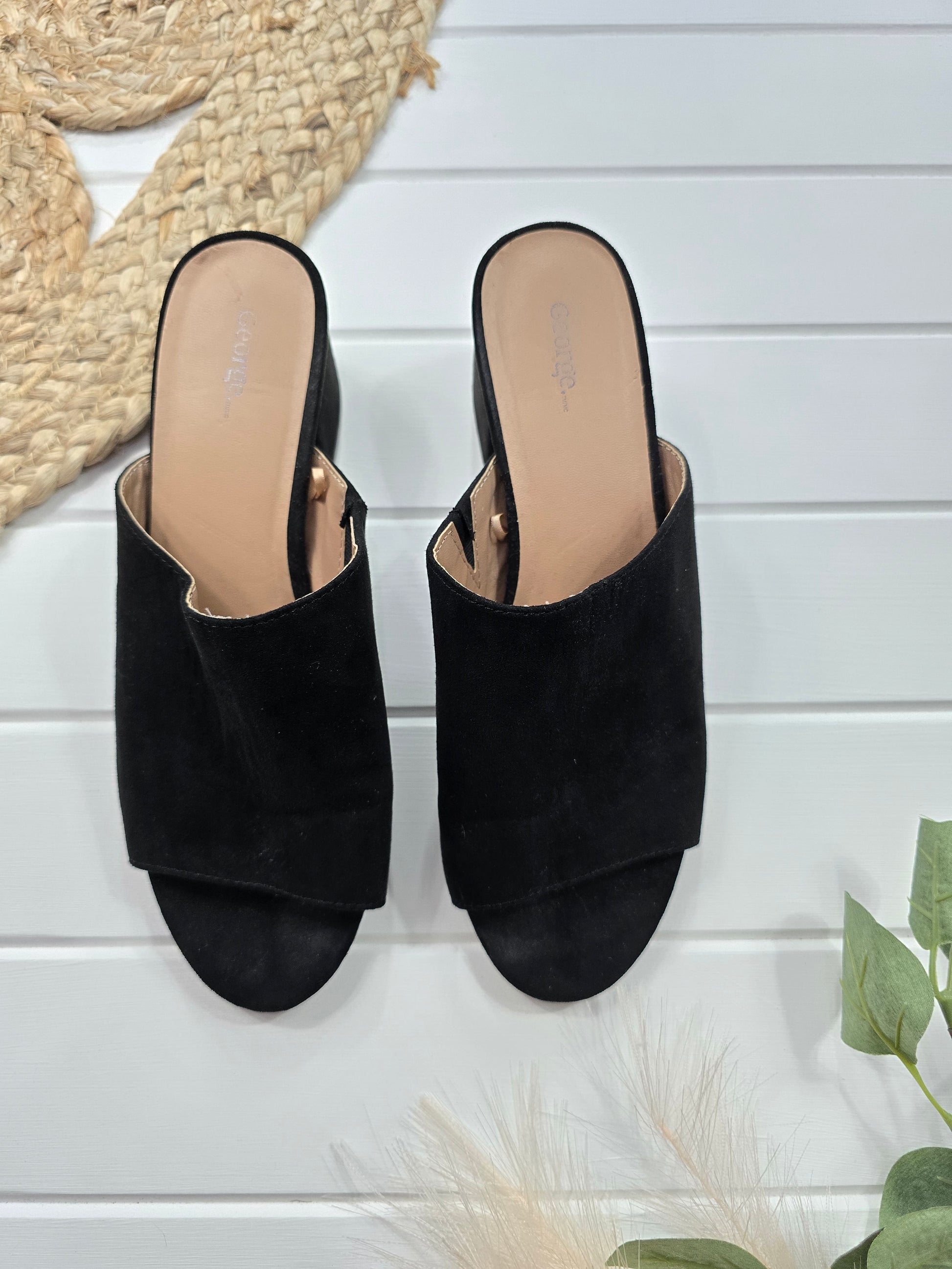 Ces sandales George en suède noir sont à la fois élégantes et confortables. Avec une hauteur de talon de 2.5 pouces, elles vous donneront une silhouette élancée sans sacrifier le confort. Parfaites pour une soirée spéciale ou une journée au bureau. Taille 8.