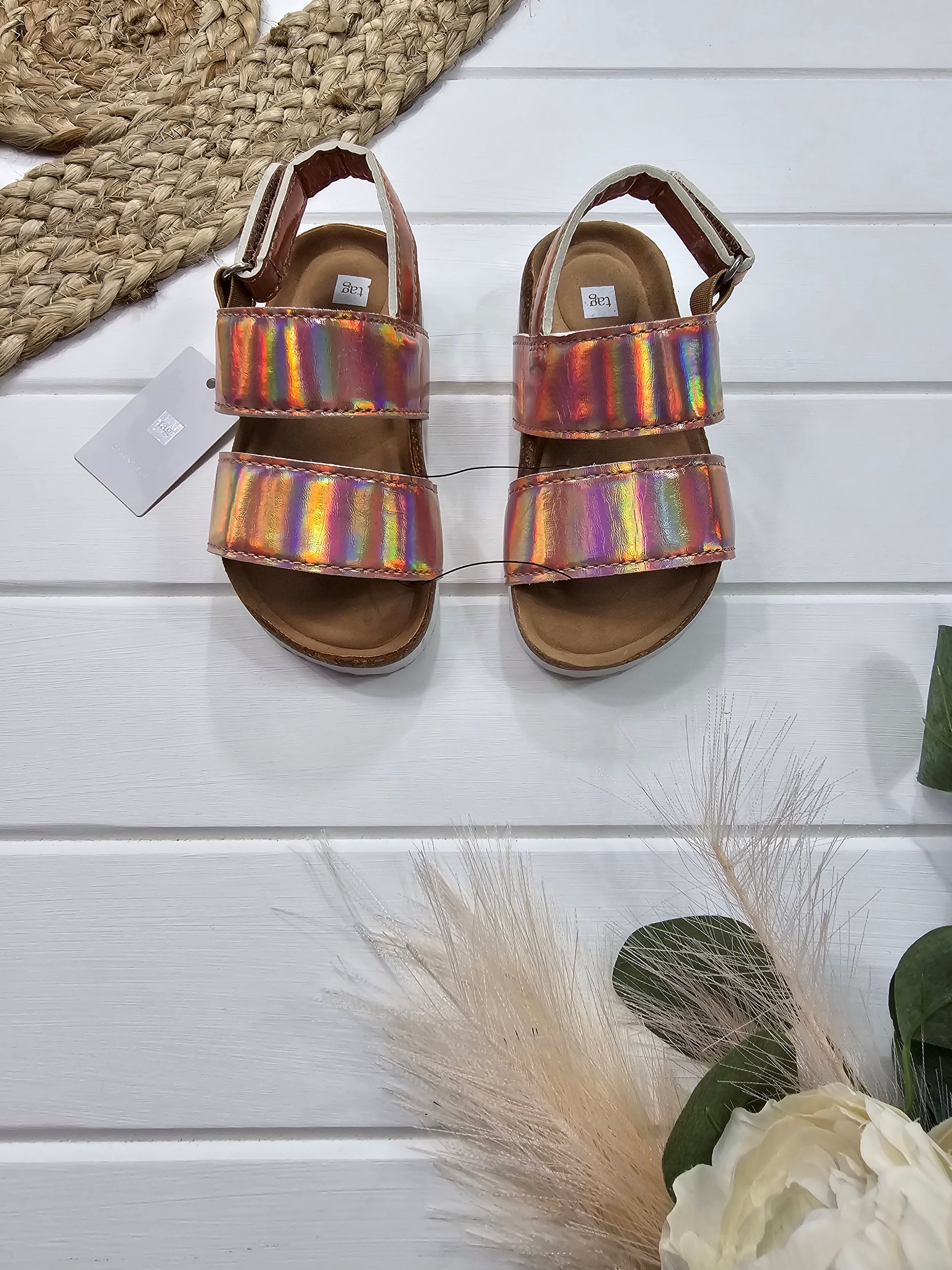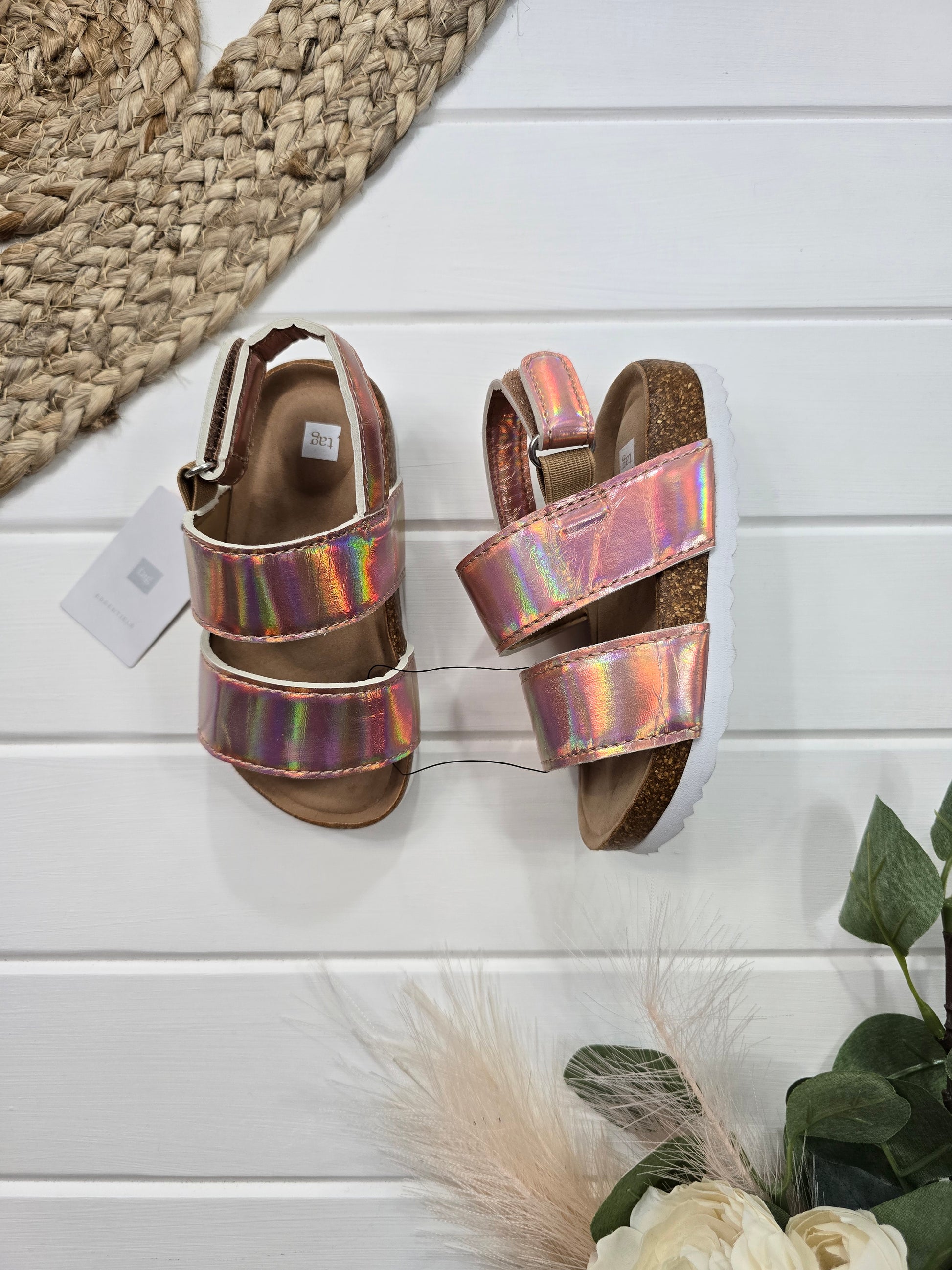 Égayez votre style avec les sandales Tag en taille 8 ! Ces sandales neuves avec étiquettes ont une teinte rose métallique éclatante pour un look amusant. La fermeture à velcro permet un ajustement confortable et facile. Parfait pour les jours ensoleillés et les promenades en ville (ou à la plage) !