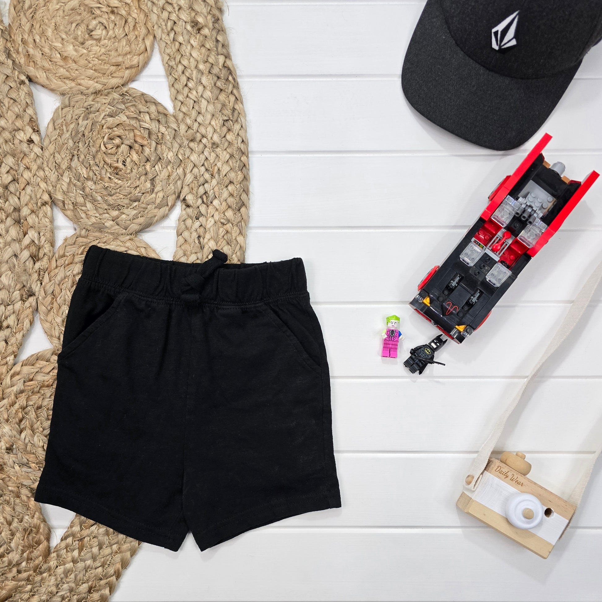Ce short noir en molleton avec poches est conçu pour les enfants de trois ans. Le Short George offre un confort et une praticité grâce au molleton doux et aux poches pratiques. Parfait pour les activités de plein air ou pour se détendre à la maison.