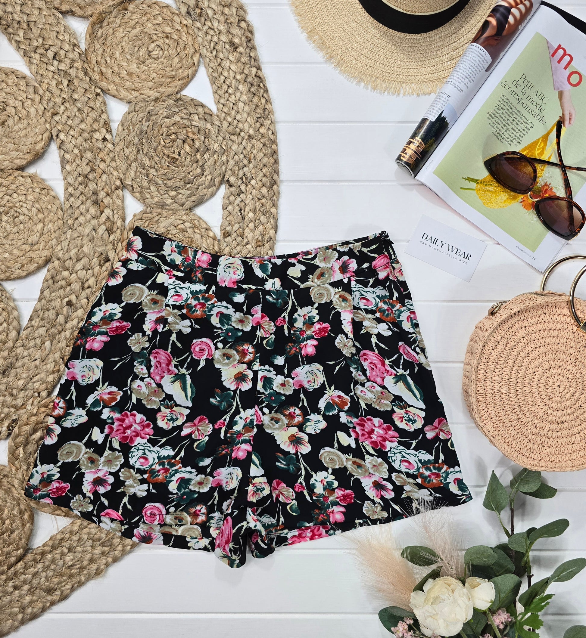 Ce Short S'ebo, petit mais pratique, est fabriqué en tissu de voilage noir fleuri, offrant un look élégant et confortable. Avec sa fermeture éclair sur le côté, il assure un ajustement parfait pour un look impeccable. Idéal pour toutes les occasions, il vous garantit un style sans effort.