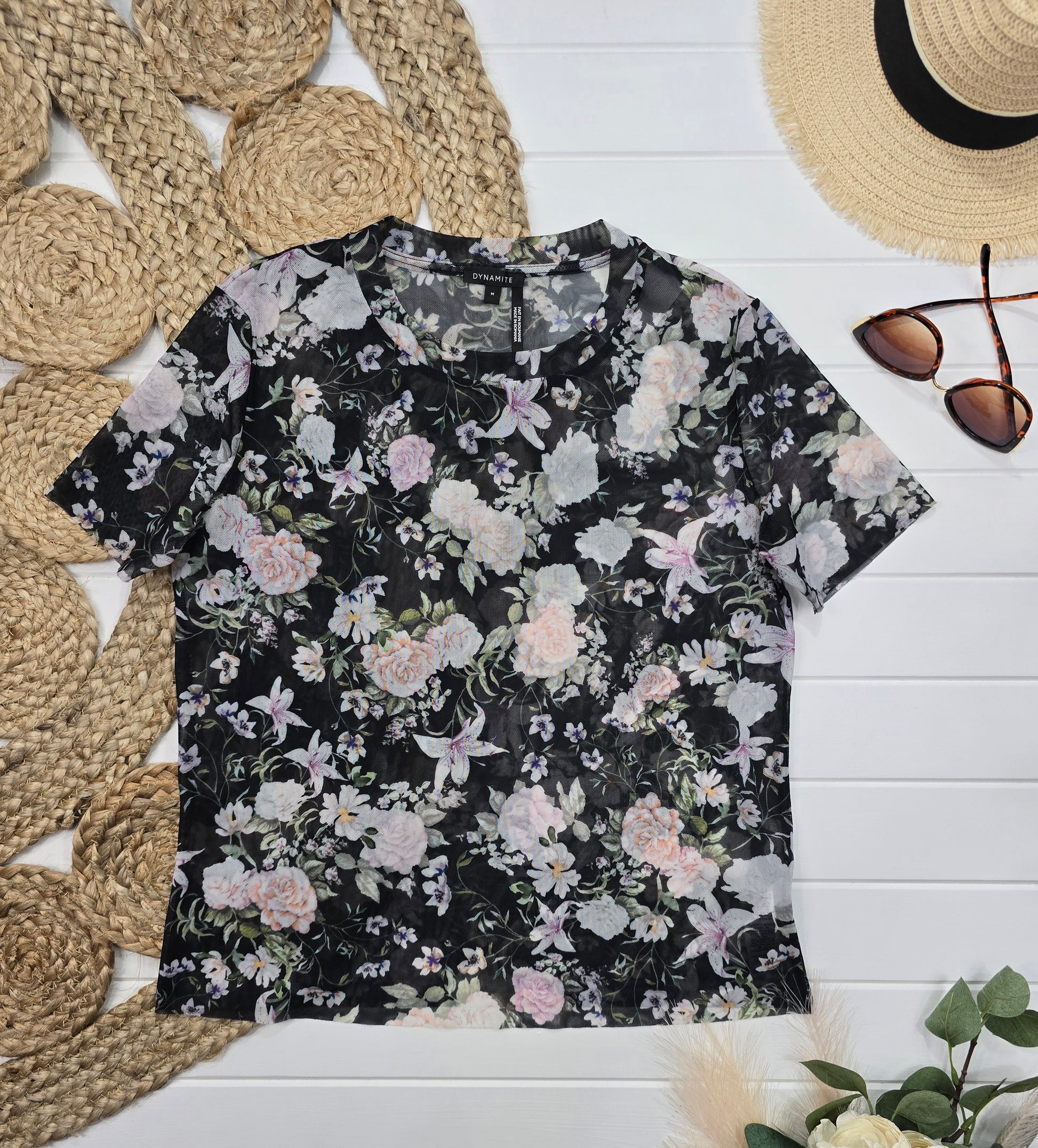 Vous cherchez un t-shirt Dynamite qui vous met en valeur et vous fait sentir confiant ? Essayez notre T-shirt Dynamite noir avec des fleurs transparentes. Parfait pour un look à la fois décontracté et élégant, ce t-shirt médium est un incontournable de votre garde-robe. Laissez-vous séduire par son style unique et dynamique !