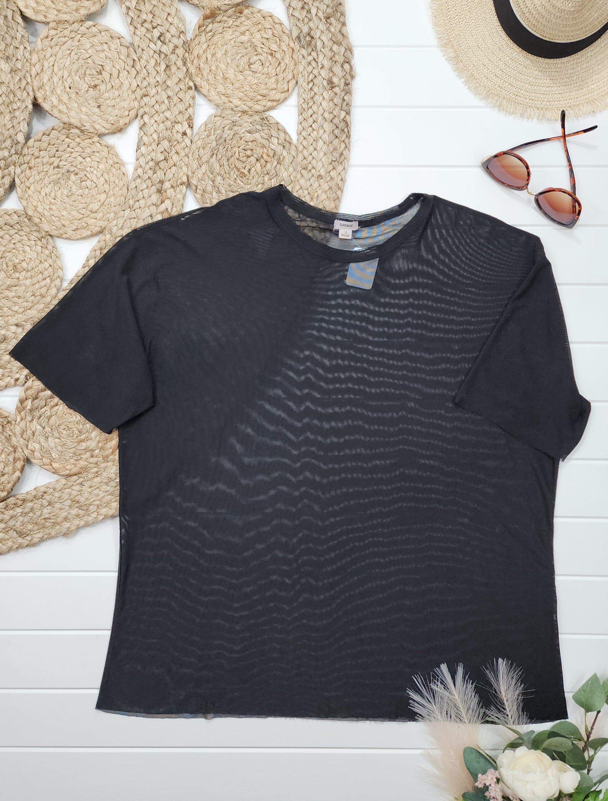 Un t-shirt noir transparent avec le logo Garage, taille Large. Ajoutez une touche de style edgy à votre garde-robe. Parfait pour une soirée en ville ou un concert rock. Faites-vous remarquer !