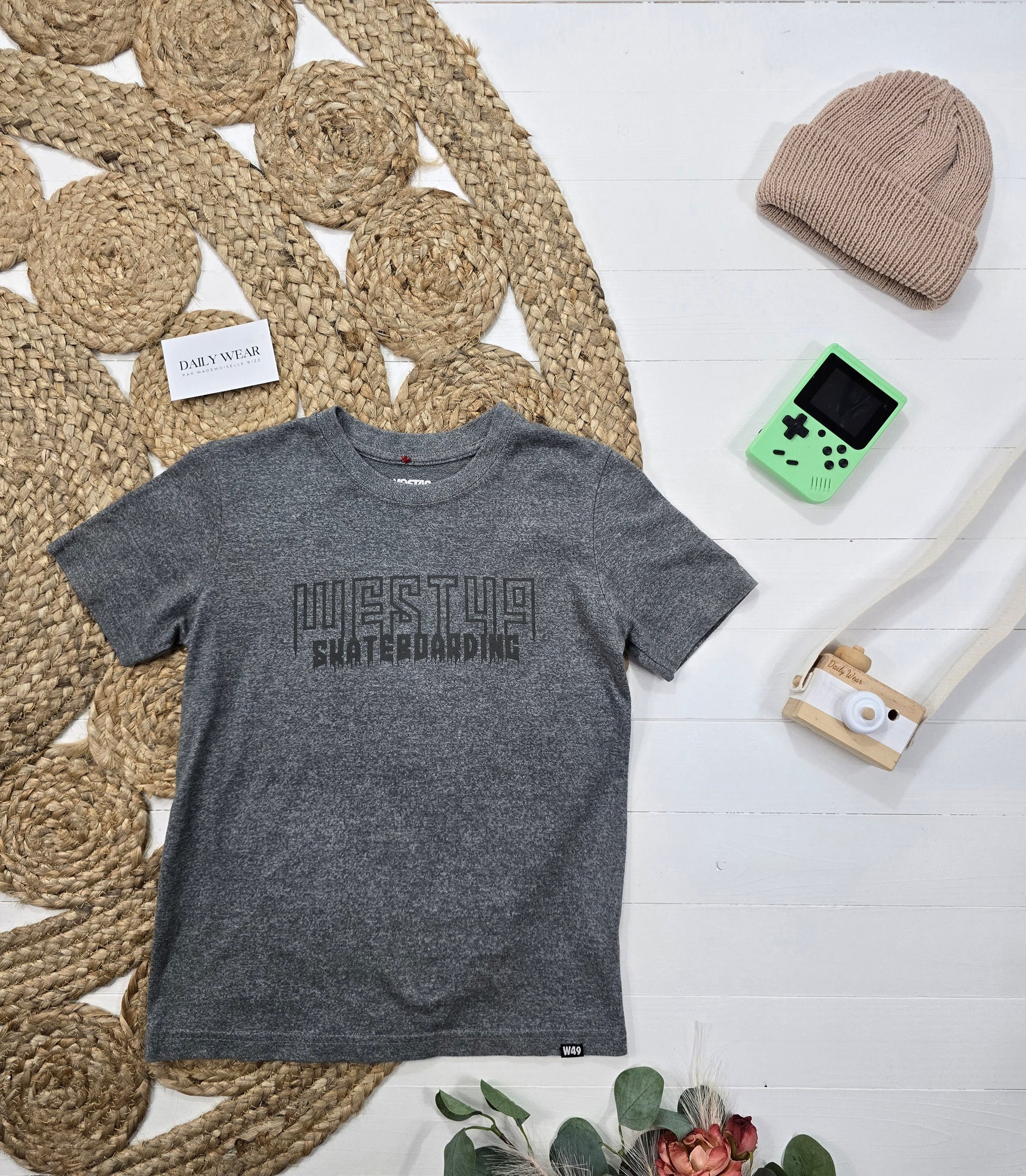 Ce T-shirt West49, taille 7, ajoute une touche cool à votre tenue avec son logo gris sur fond gris. Ne vous laissez pas passer à côté de ce style original et amusez-vous à le porter pour vos aventures urbaines.