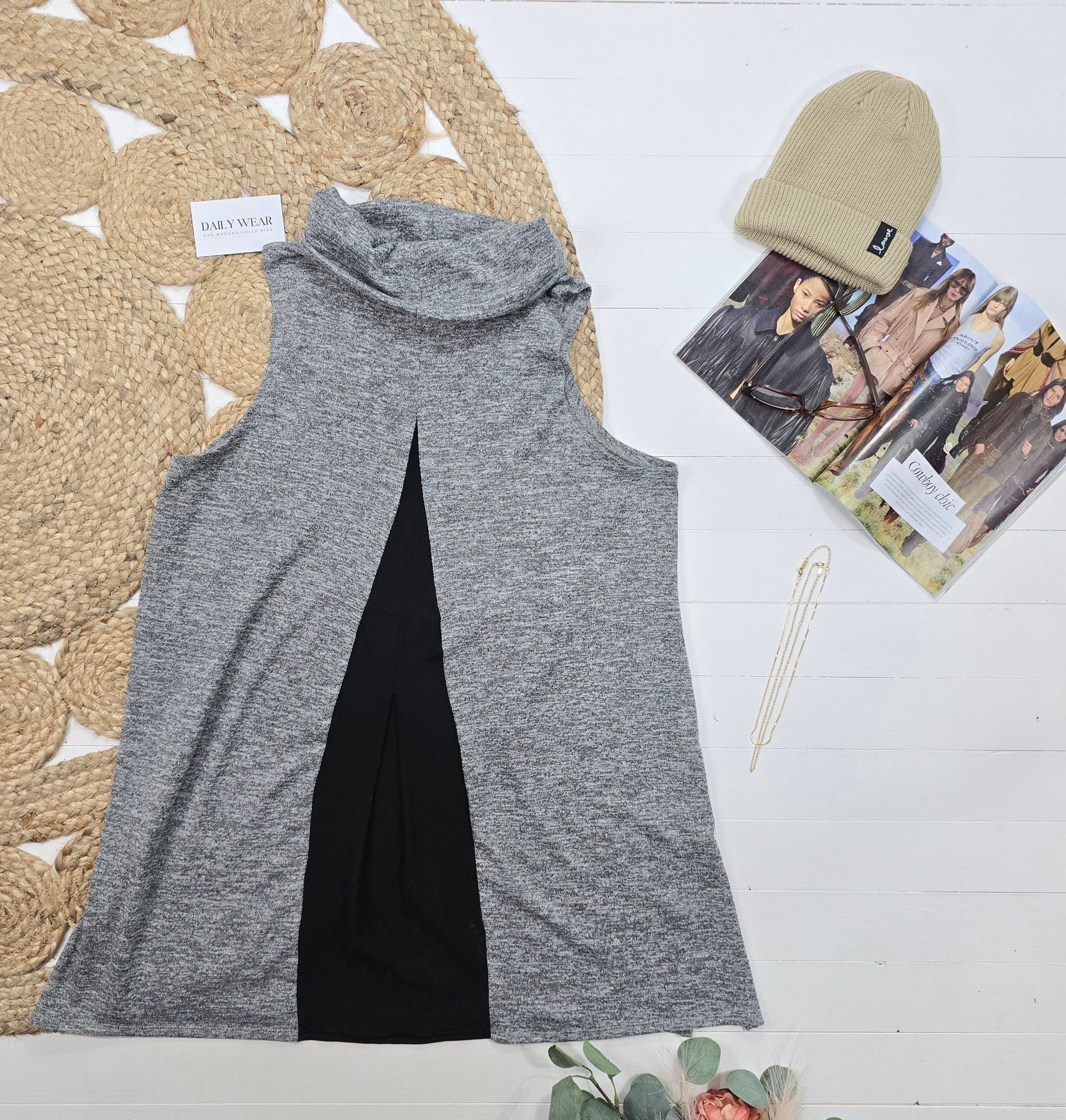 Rockez votre style avec notre tunique grise à la fois chic et décontractée. Avec sa coupe sans manches et son col baveux, elle vous apportera une touche de fantaisie à toutes vos tenues. Taille XLarge pour un confort optimal. (Attention, risques d'envies chez les amies jalouses !)