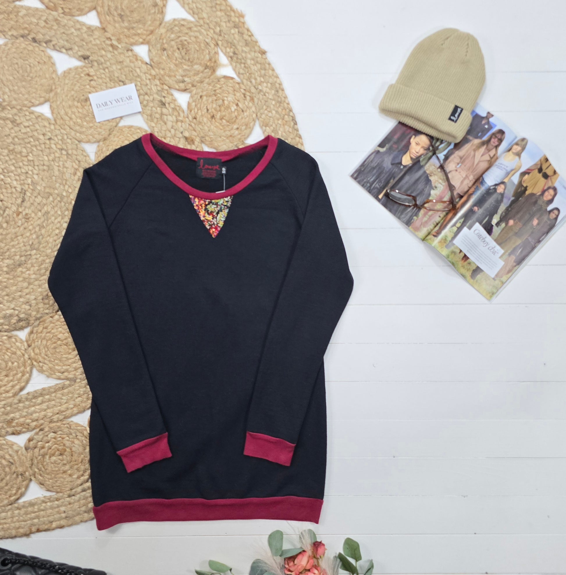 Cette tunique Louve, petite mais puissante, mêle élégance et caractère avec sa combinaison audacieuse de noir et rouge foncé. Parfaite pour une soirée ou une journée au bureau, elle vous fera sentir forte et féminine en même temps. Un must-have pour les femmes à la recherche d'un style unique et inoubliable.
