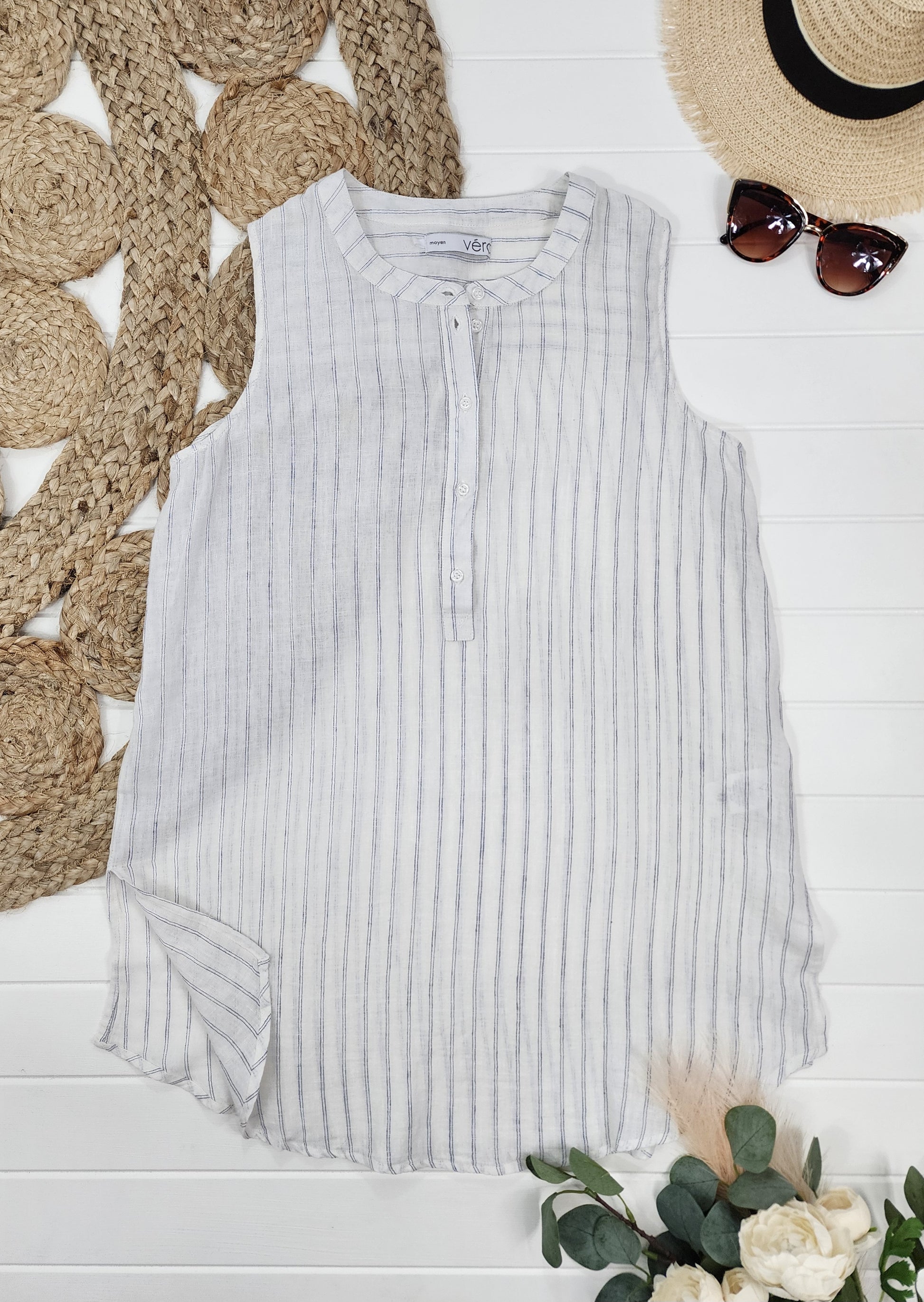 Découvrez la Tunique Véro en lin blanc et bleu ! Confectionnée en lin de qualité, cette tunique Médium offre un style décontracté et élégant. Parfaite pour les journées ensoleillées, elle offre un confort optimal tout en mettant en valeur votre silhouette. Ajoutez une touche de fraîcheur à votre garde-robe avec la Tunique Véro !